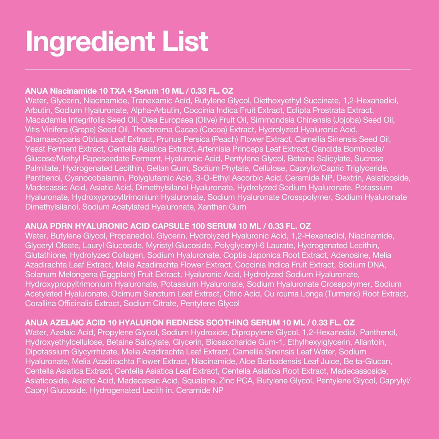 Anua Serum Discovery Trio, Mini Face Serum Travel Size Kit with Hyaluronic Acid, Niacinamide & Azelaic Acid, Hydrating Soothing Gift Set for Women, Korean Skincare Set -10ml/0.33fl.oz × 3EA