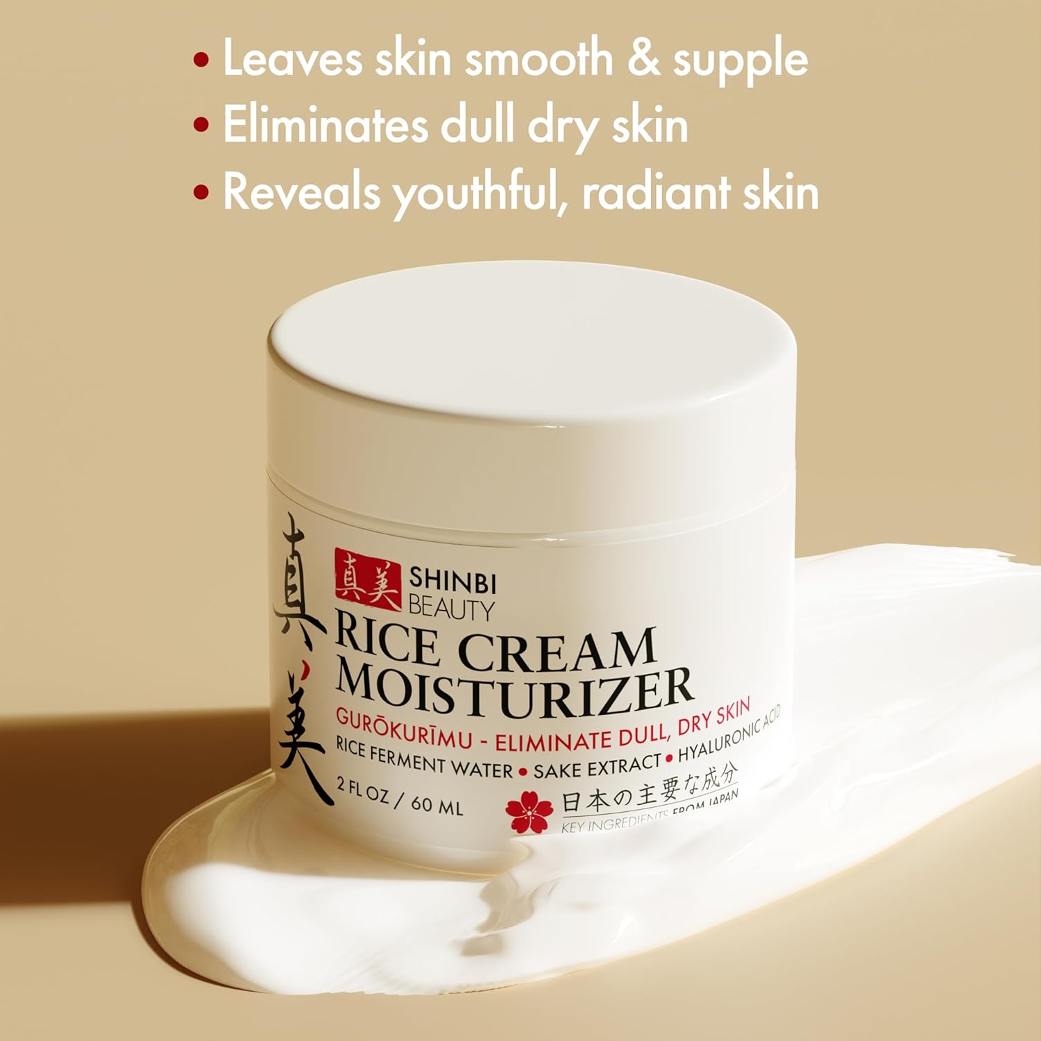 Japanese Skincare Moisturizer for Face - Rice Cream With Rice Ferment + Sake Extract - J Beauty Natural Asian Skincare Products 2oz