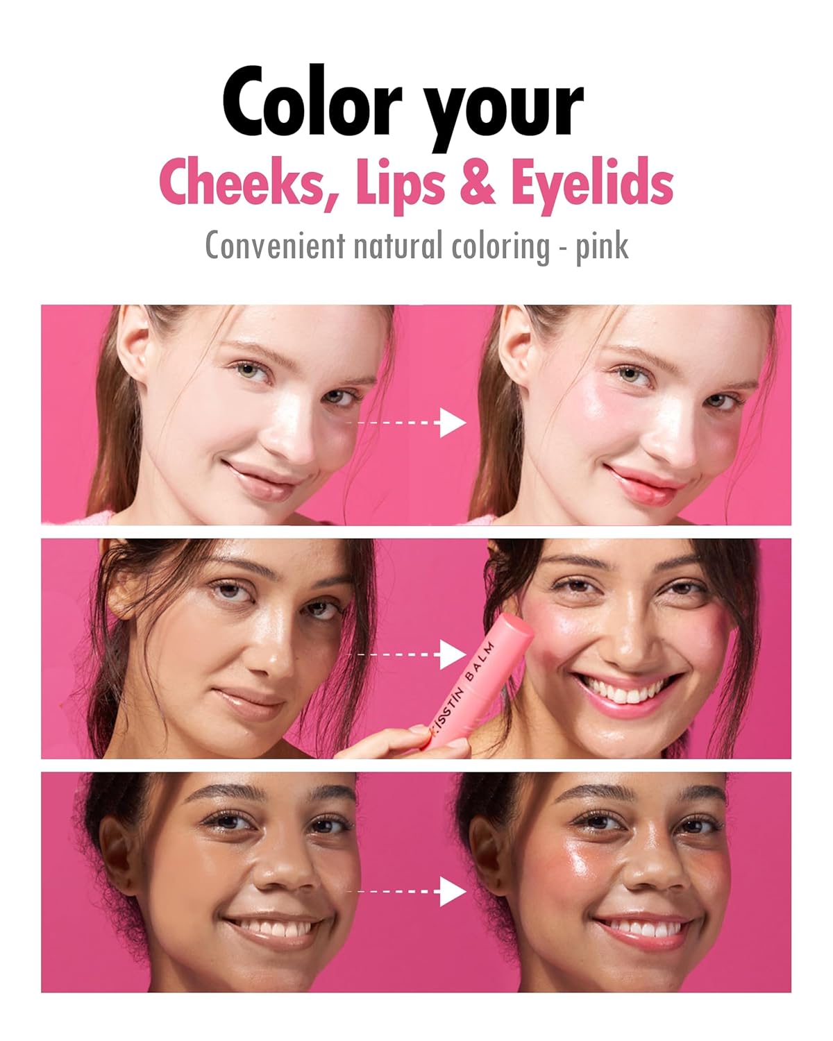 - ✅ ELASTICITY-ENHANCING BEAUTY BALM. KAHI Kisstin Pink Lip and Cheek Stick Multi Balm is a multitasking makeup balm moisturizer stick enriched with Schisandra Berries and Carrot Root Extract, providing intense hydration and a dewy finish. It serves as a tinted lip balm, cheek blush, or eyeshadow, offering versatile makeup enhancement in one product!