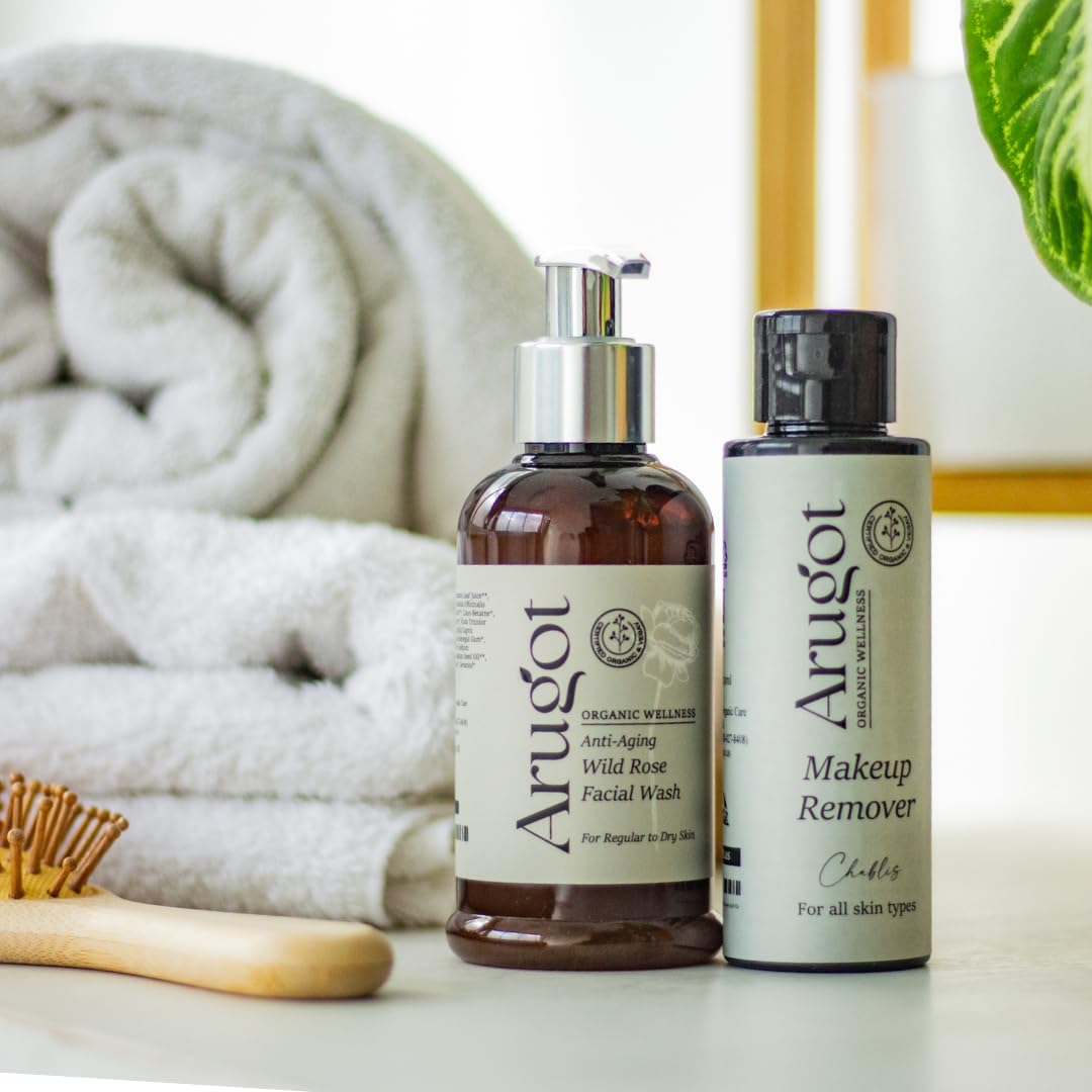 - Achieve the ultimate skincare routine by applying our makeup remover to a cotton ball, massaging it gently onto your skin, and removing makeup effortlessly. For the perfect finish, follow up with Arugot's Wild Rose Anti-aging Face Wash and elevate your skincare game to new heights. Make every day a beautiful day with Arugot!