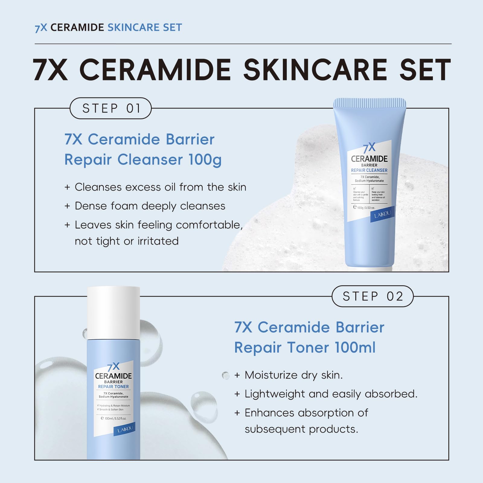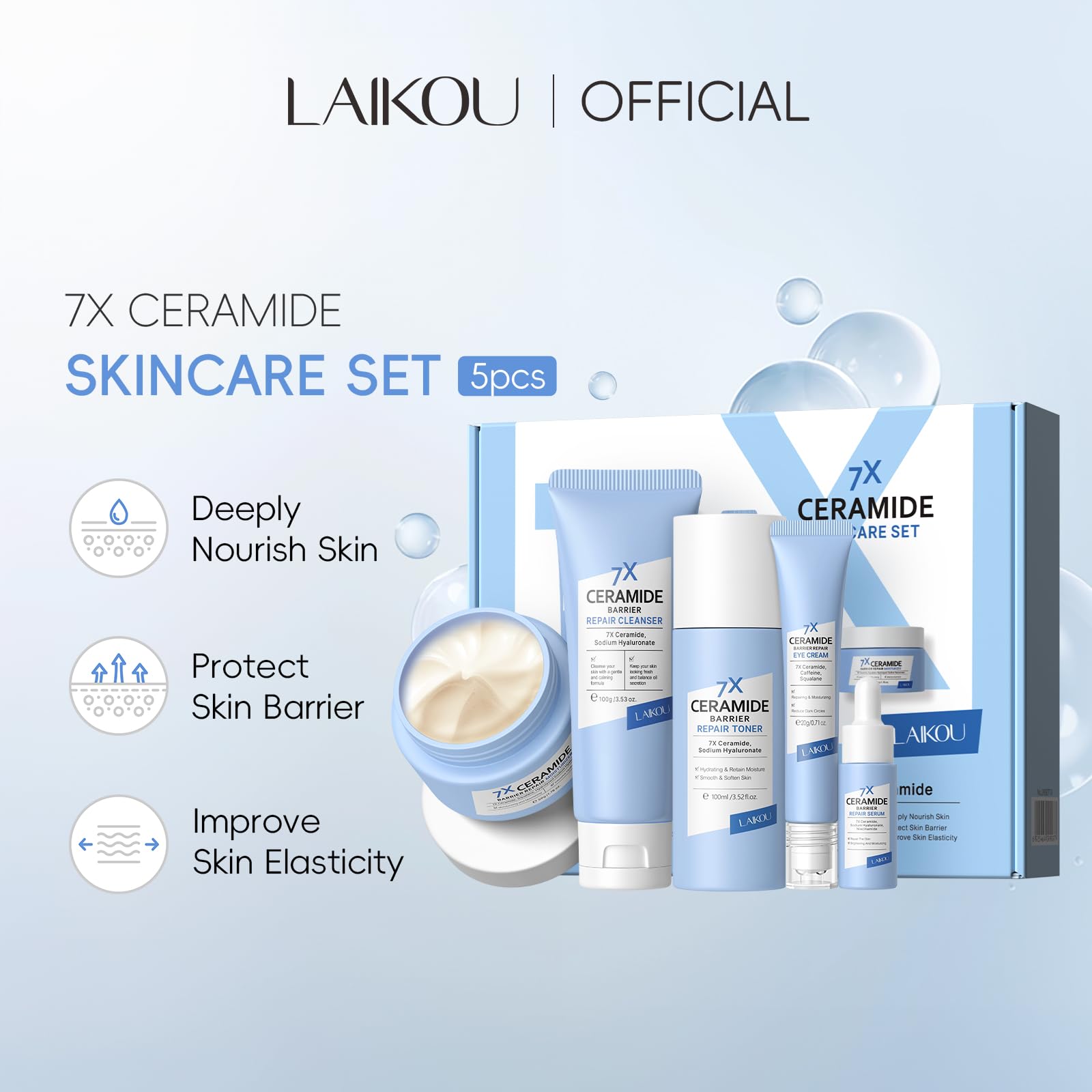 - 【Face Routine Set for Women】LAIKOU 7X Ceramide skin care sets & kits offers a complete skincare routine with a full range of essentials, including Cleanser, Toner, Serum, Eye Cream, and Moisturizing Cream. This set helps rejuvenate your skin, leaving it fresh and vibrant.