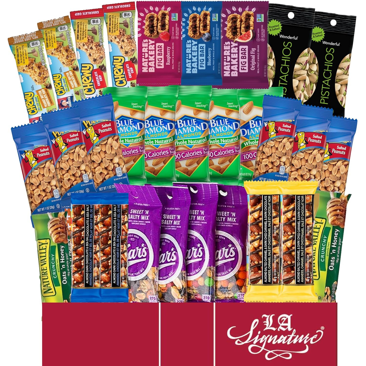 • ARE YOU READY FOR A SNACK ? – The LA Signature healthy bars kit, Nuts, & protein bars is the perfect gift for any On The Go, Housewarming, Retirement, Anniversary Colleges, Trips, Birthday Party, Office, Meetings, Hospitals, Churches, Military and many more!! Just pop the packets and make your Movie Night, College Dorm, School Snacks, Birthdays, Homes, Gifts, Parties, Sports Night, Office Break, Picnics, Camping Trip, Road Trip or Business Meeting Fun and Crunchy!