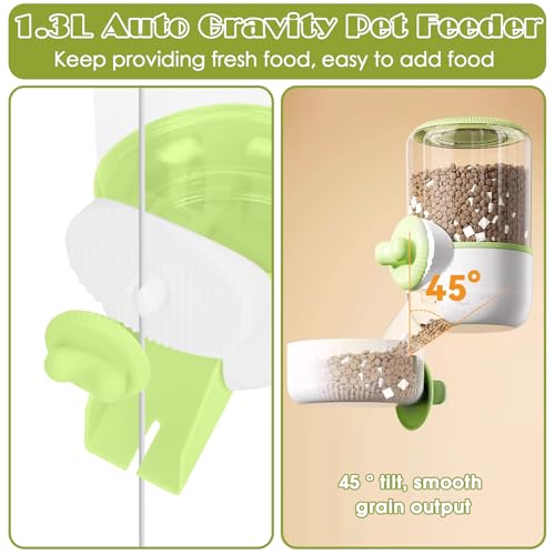 - Hanging automatic pet food and water dispenser set have enough capacity for small animals, like Kitten, puppy, bunny, guinea pig, allow them to enjoy fresh food and water conveniently for about 3-6 days.