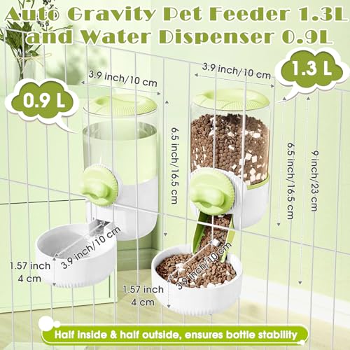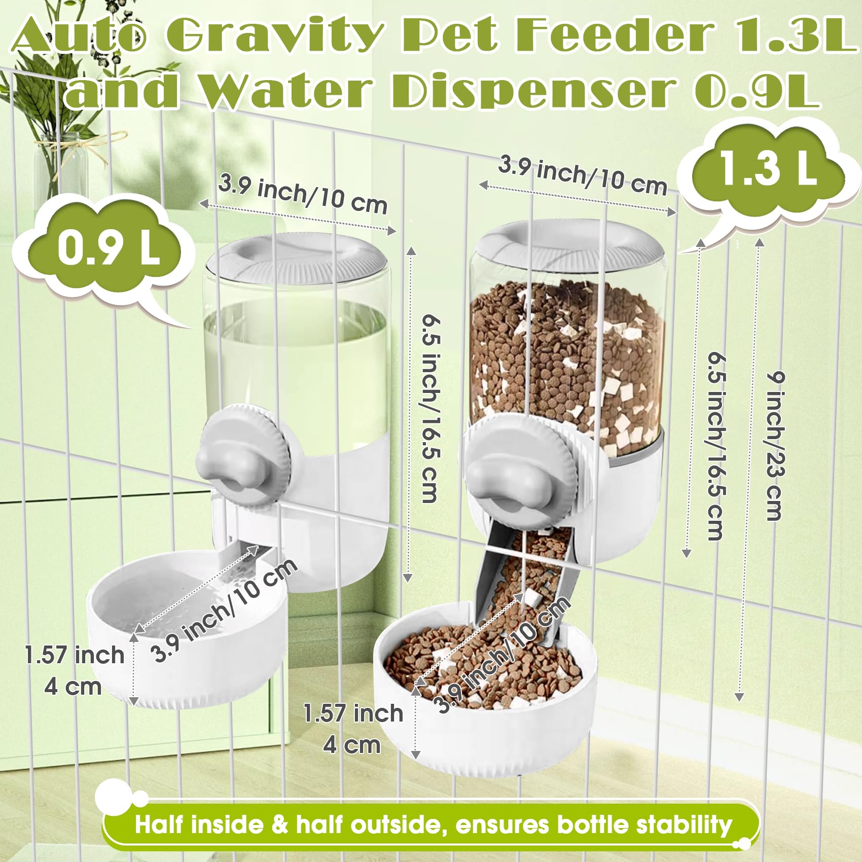 - The pet food water dispenser includes 1 x 1.3L Pet Feeder and 1 x 0.9L Water Dispenser, ensures your pet animals eat and drink freely. Made of food grade material, sturdy and safe to use.