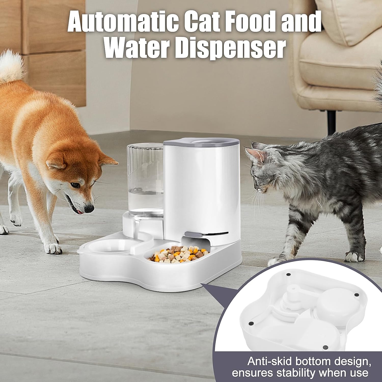 2 in 1 Pet Feeder and Water Dispenser, Automatic Cat Food and Water Dispenser, Gravity Pet Feeder for Small Medium Dog Puppy Cat Kitten
