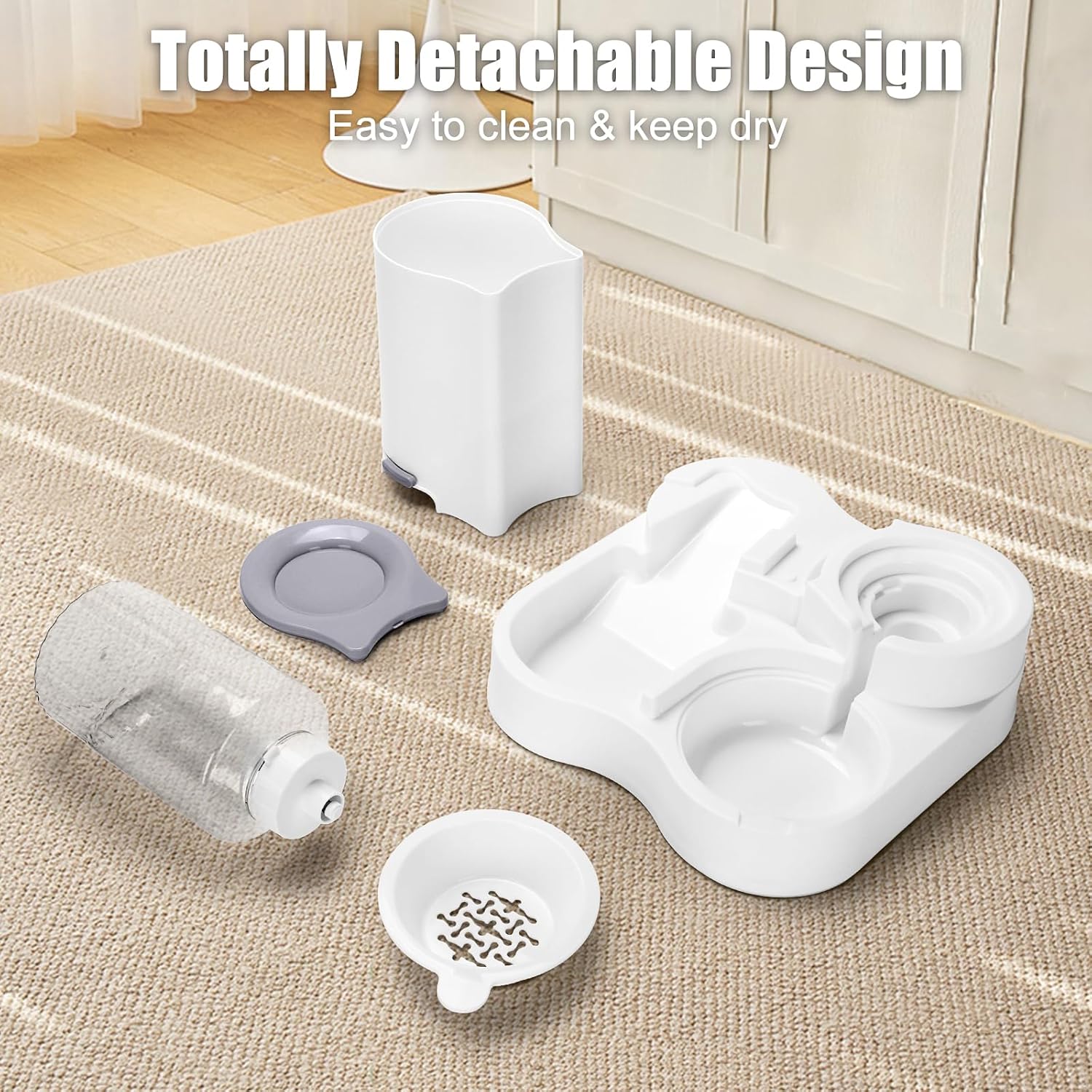 • The pet food and water dispenser is totally detachable, super easy to clean and assemble. To provide clean and fresh food and water for your pets and protect their health.