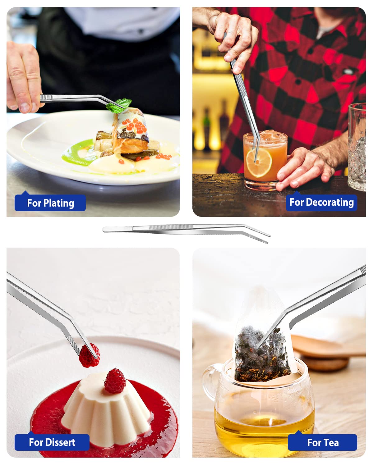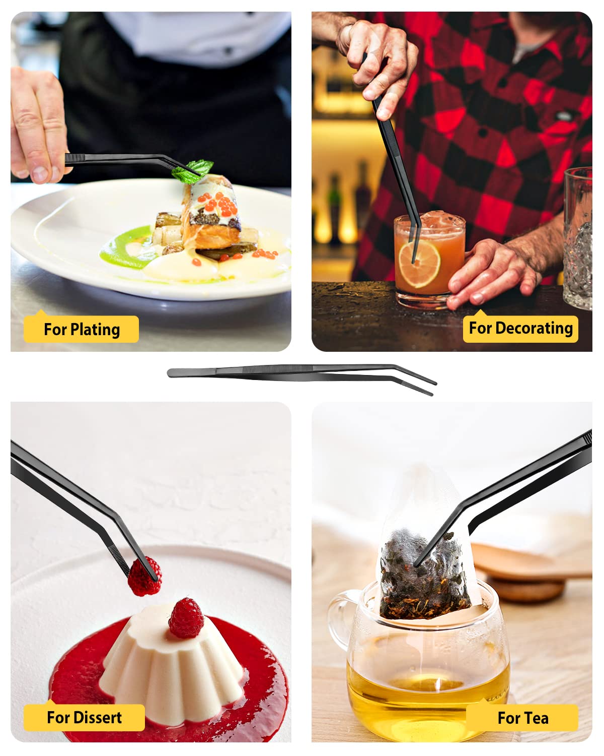- Widely Used : It is essential to keep a professional set of food tweezers in your kitchen;It can help you a lot in cooking;Our tweezers set is useful for cooking, roasting and serving;After each use, just wipe with hot water or put it in the dishwasher
