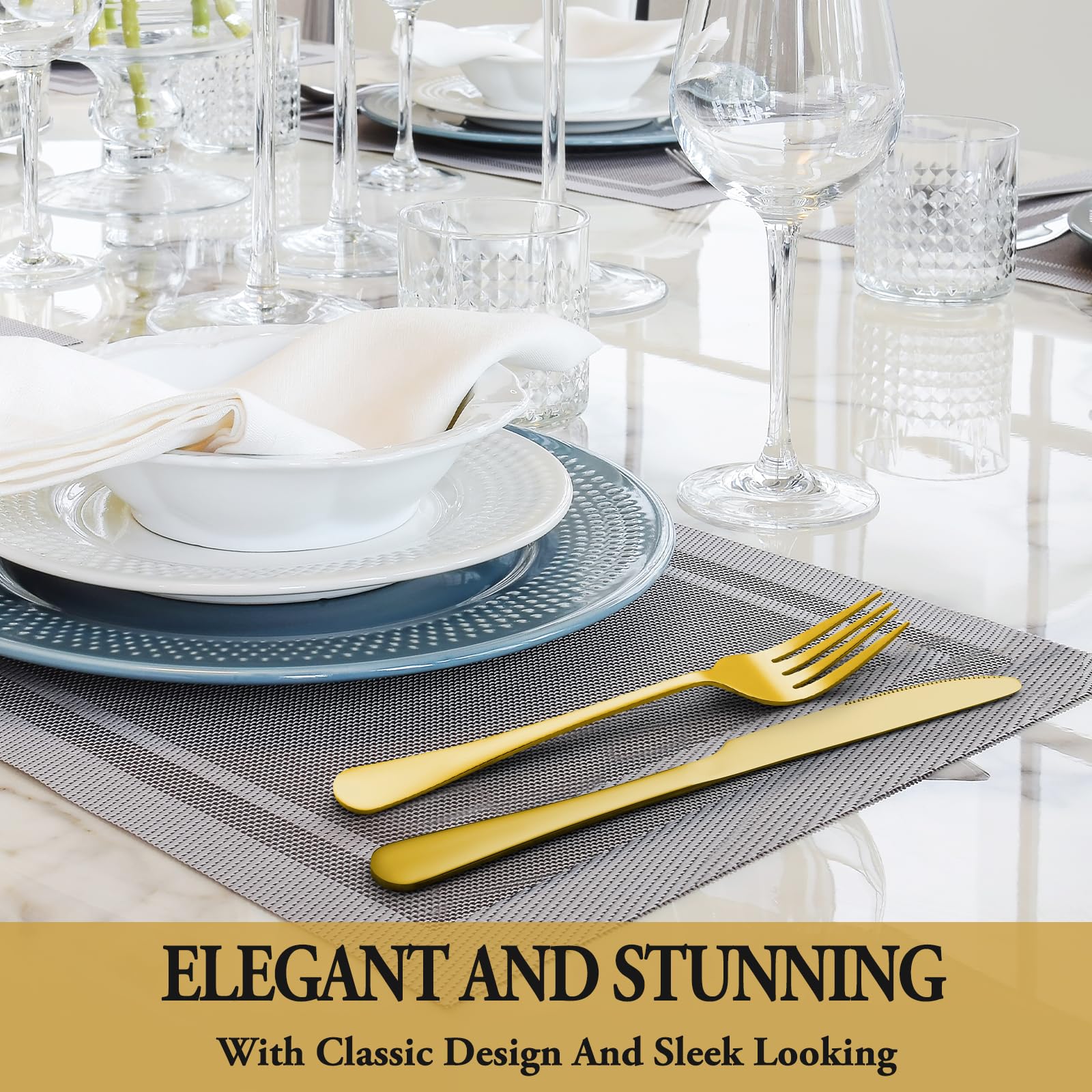 - ELEGANT SHAPE AND EXQUISITE WORKMANSHIP: Highly mirror polished, smooth edges and the classic shape design make this flatware set stunning and look expensive. It is very suitable for all your home styles and can match any tableware you have. There are no rough spots or sharp edges, very comfortable to use without hurting your mouth at all.