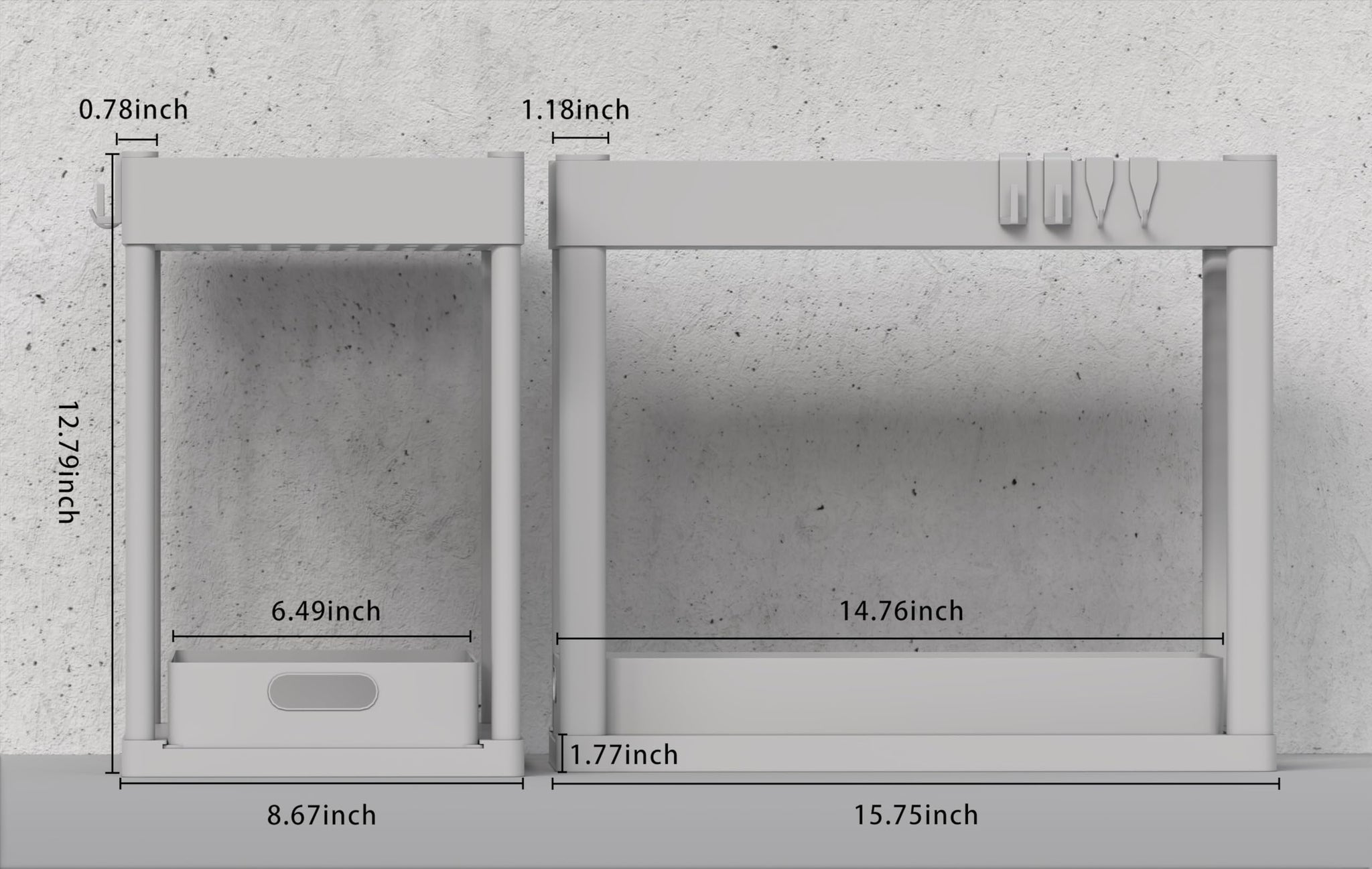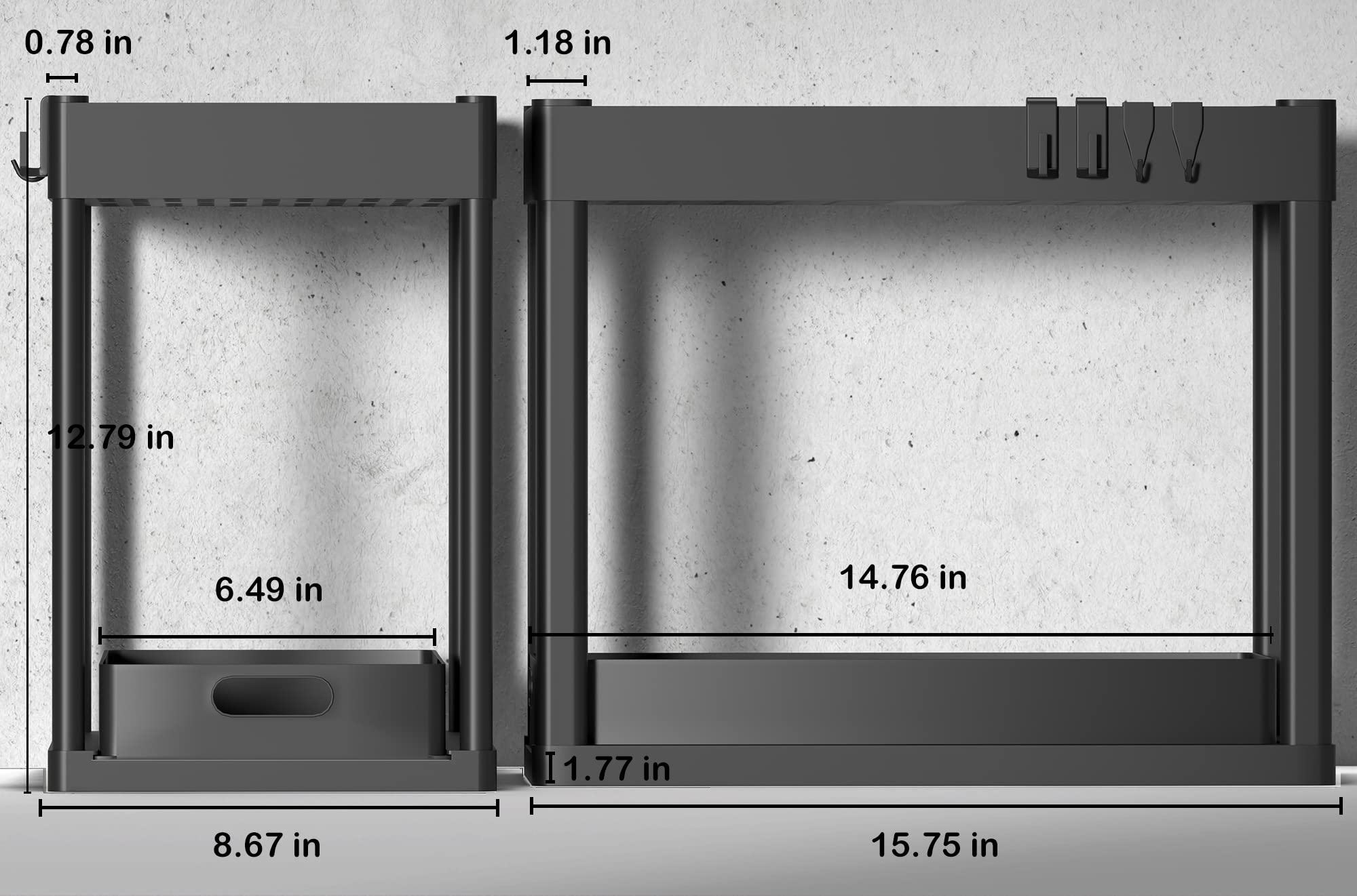 - Multi-Purpose Organization and Storage: The under sink shelf organizer can effectively save your space and is easy to move. Suitable for various scenarios such as kitchen, bathroom, garage, laundry room, office, etc