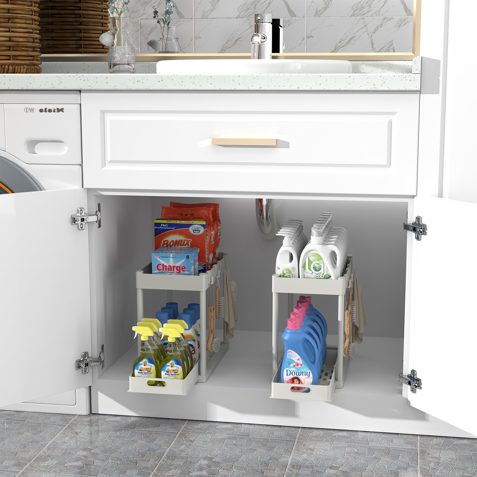 - Space Saving: 2 layers of storage space, sliding drawers can easily place and take out most detergents and condiments, no more bending over to find, save space and keep your home organized