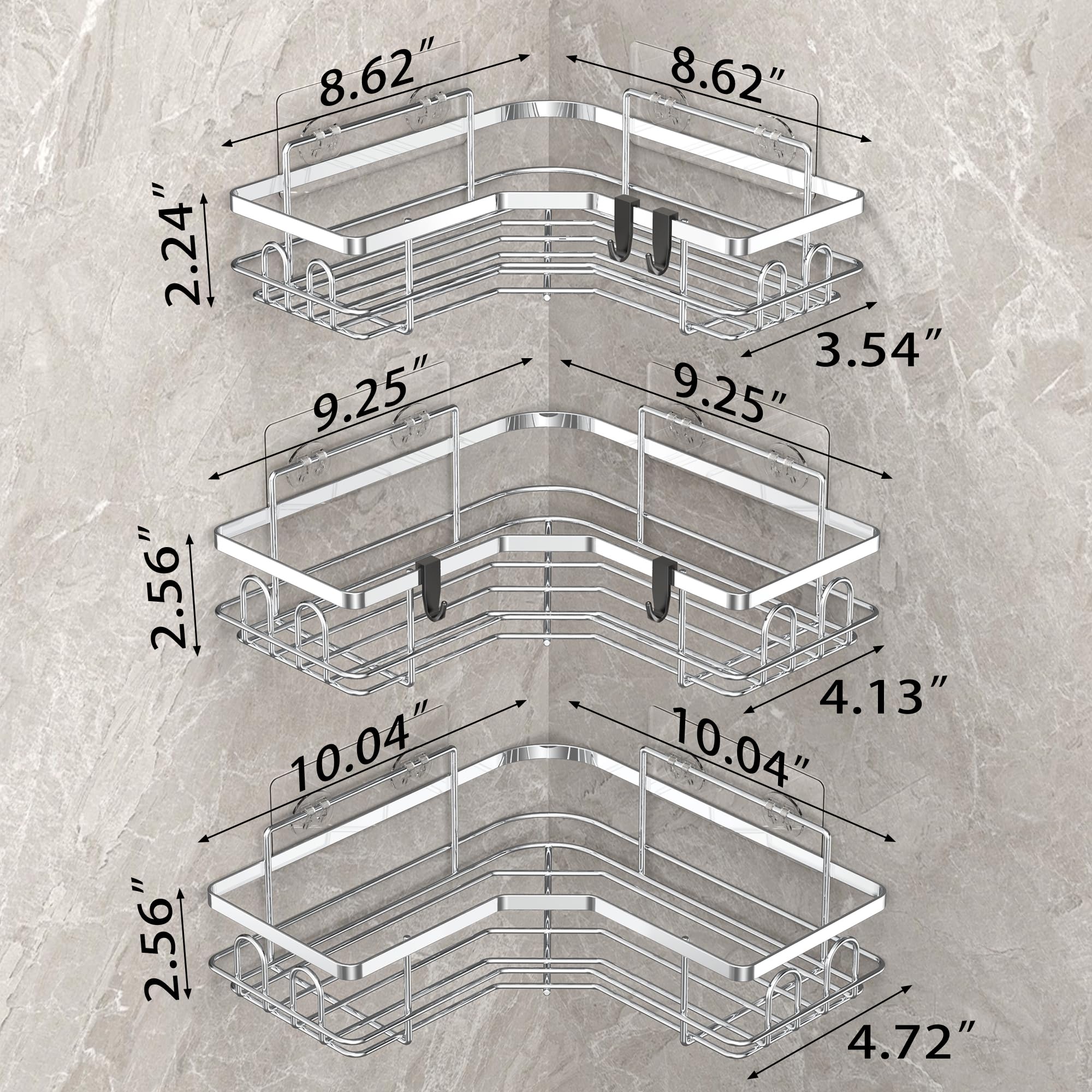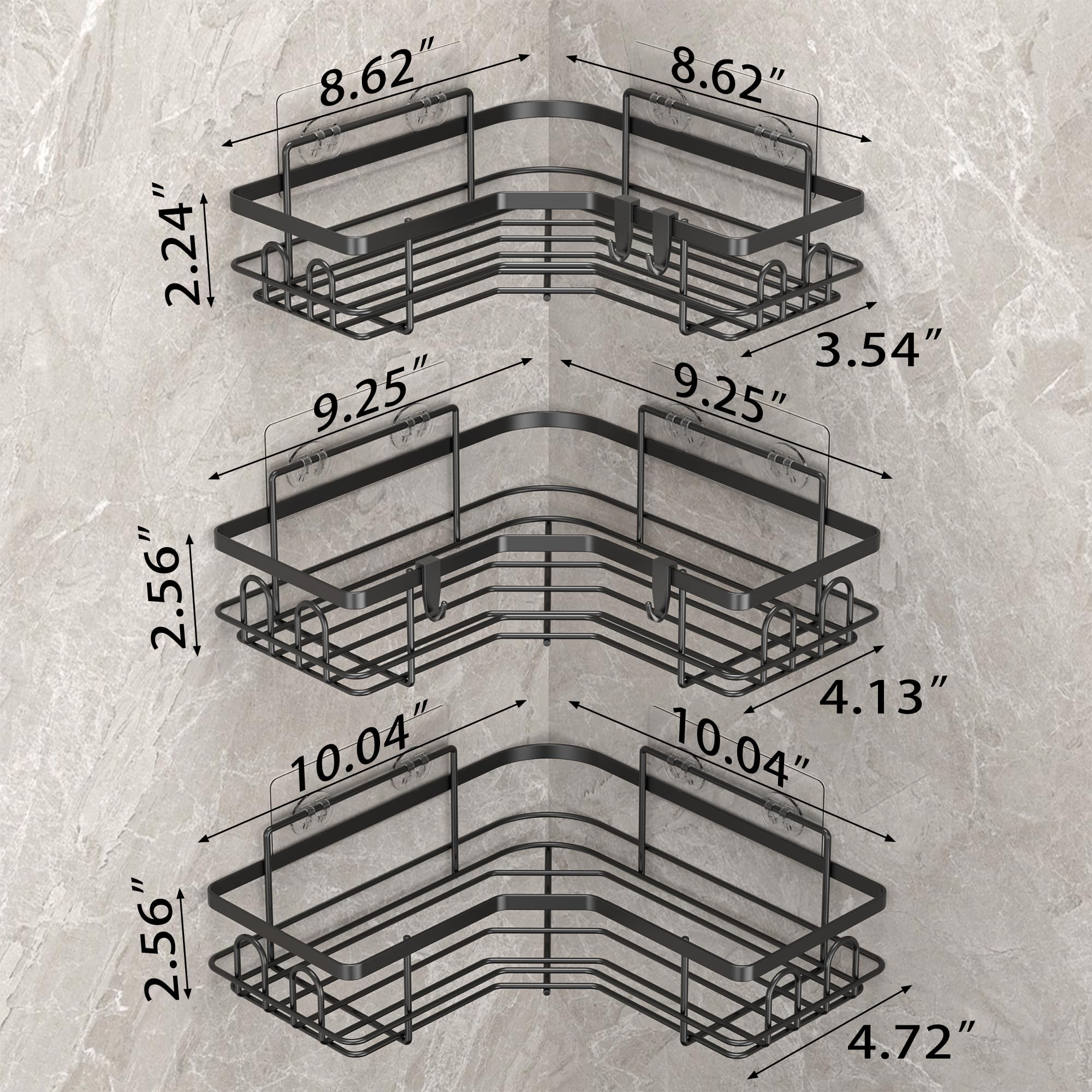 - HuggieGems Corner Shower Caddy Black 3 Pack