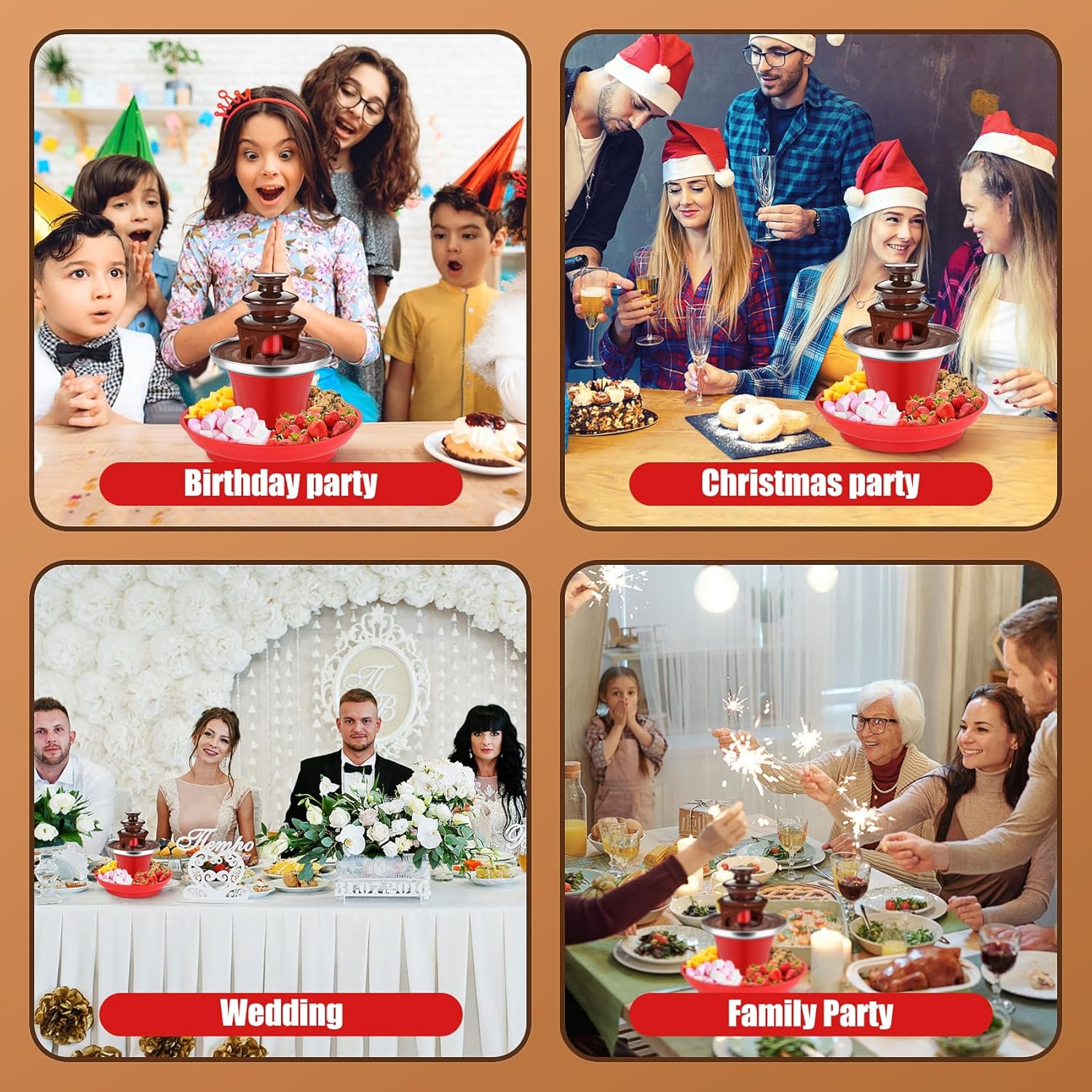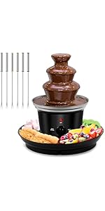 The removable serving tray is practical to hold fruits, cakes, marshmallows, cookies,any other dessert you want to drip the melting the melting chocolate or sauce. The chocolate fondue fountain is great to create beautiful effect in Weddings, Birthdays, Graduation Parties, Business Gatherings, Holidays, Casual get together with friends and families.