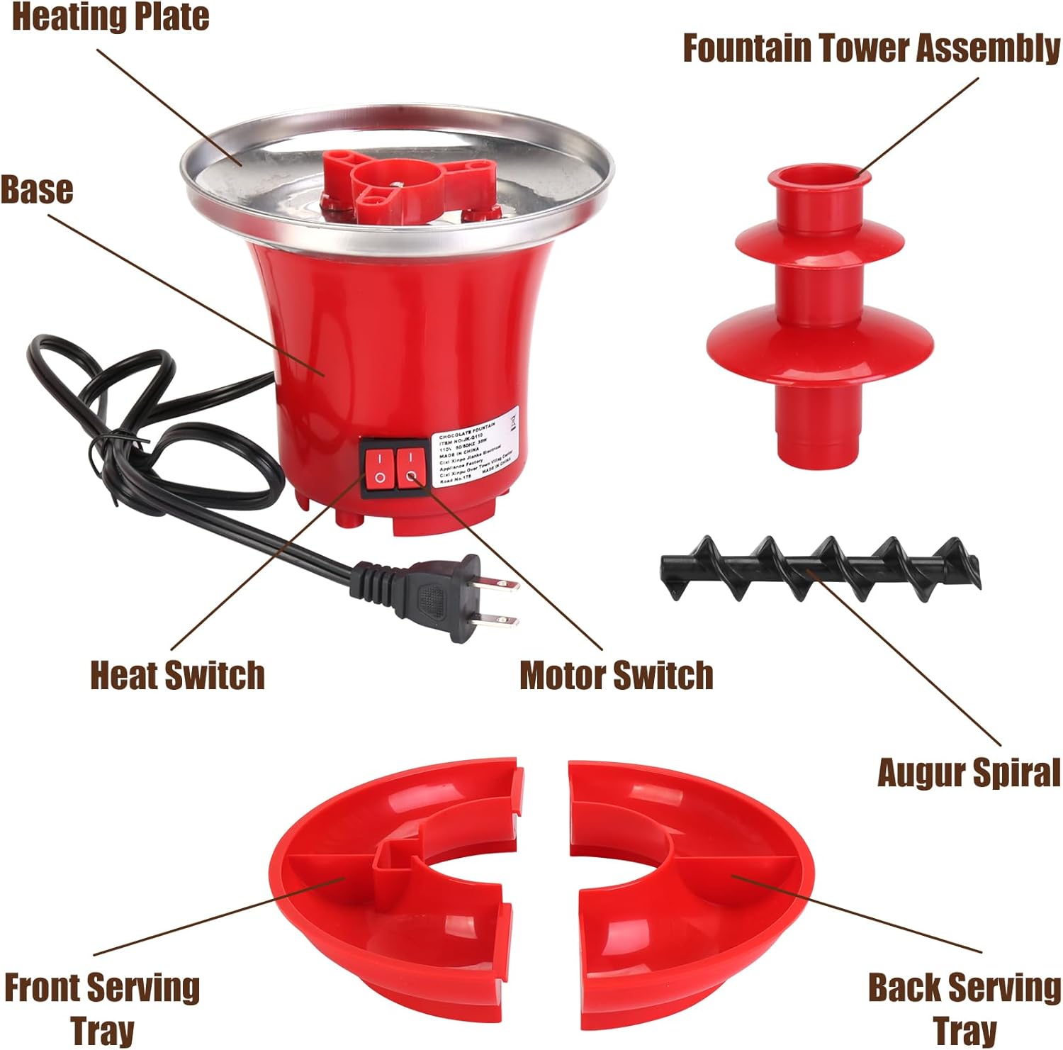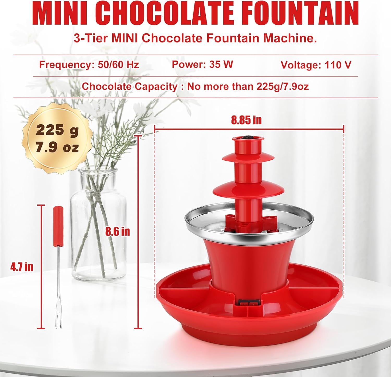 The 3-Tier MINI Chocolate Fountain Machine is easy to assemble and disassemble, super easy to setup and cleanup, comes with removable serving tray, very convenient to use and saving a lot of space.