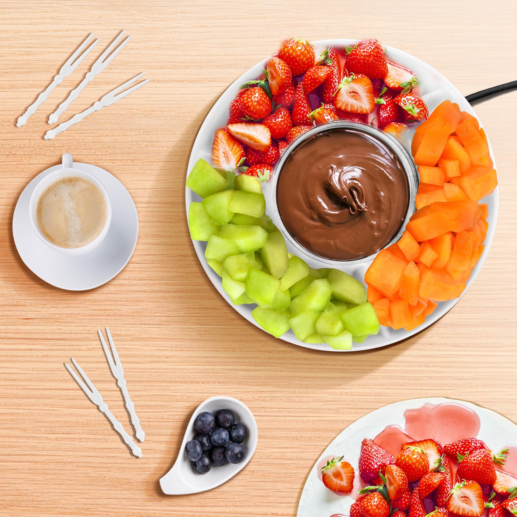 - Food Grade Serving Tray - Practical to hold fruits, cakes, marshmallows, cookies,any other dessert you want to drip the melting the melting chocolate or sauce. Allow you to enjoy a good time of dipping chocolate.