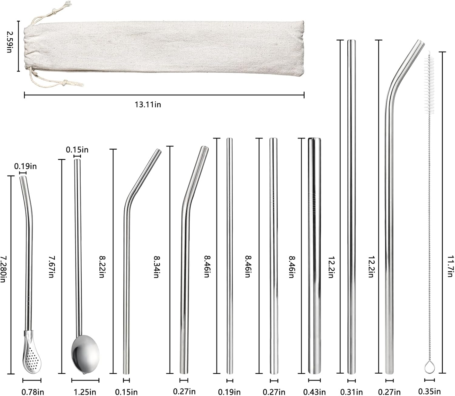 9 Pcs Stainless Steel Straws Metal Drinking Straws Reusable for Tumblers and Travel Mugs, Cleaning Brushes and Cloth Bag Included