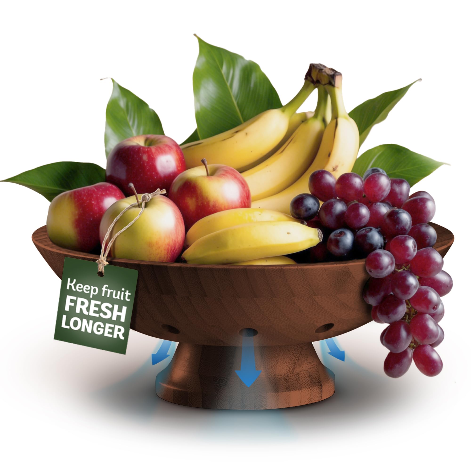 - RAISED BASE FOR CLEAN STORAGE: The elevated pedestal design keeps fruit lifted off your counters for better airflow and cleaner presentation.