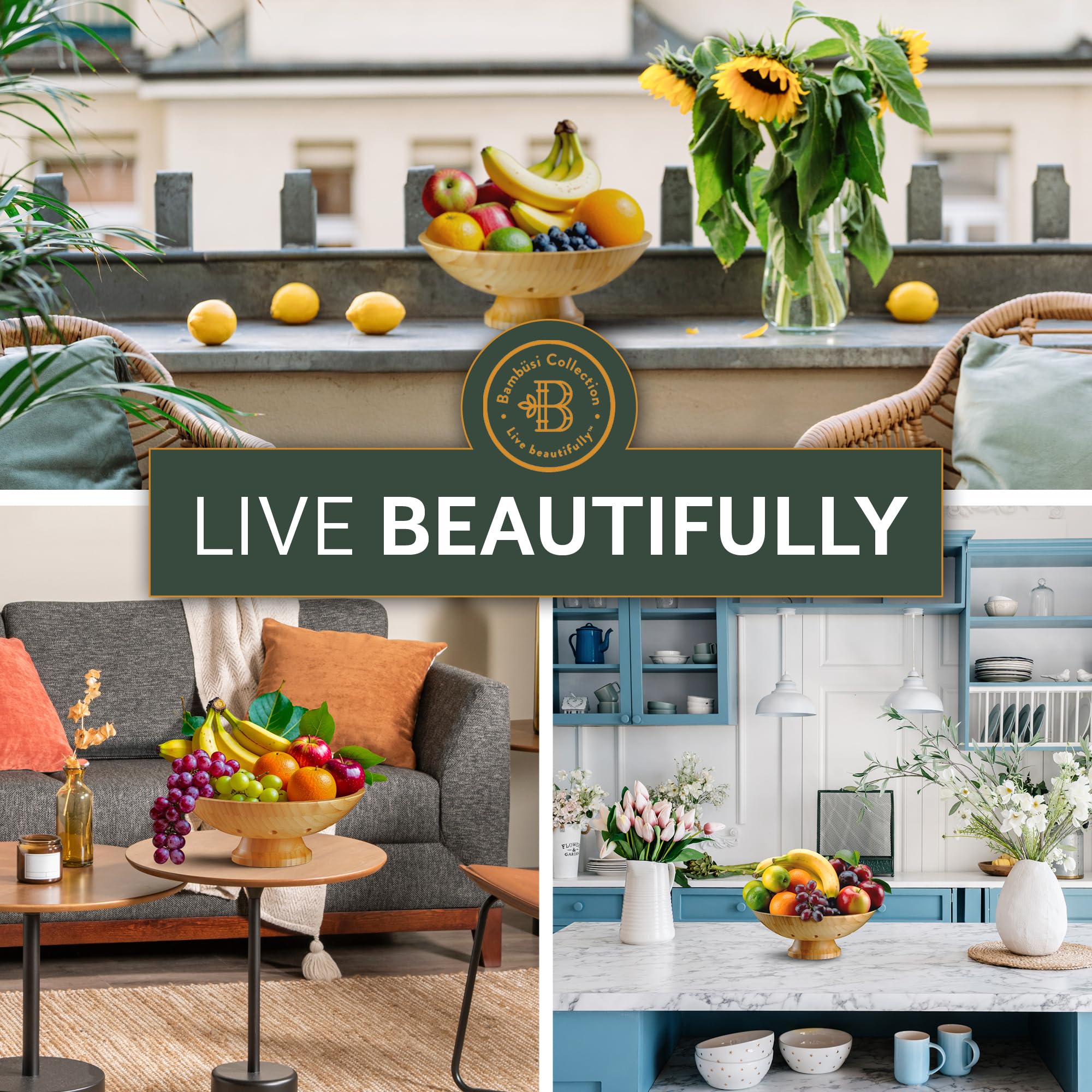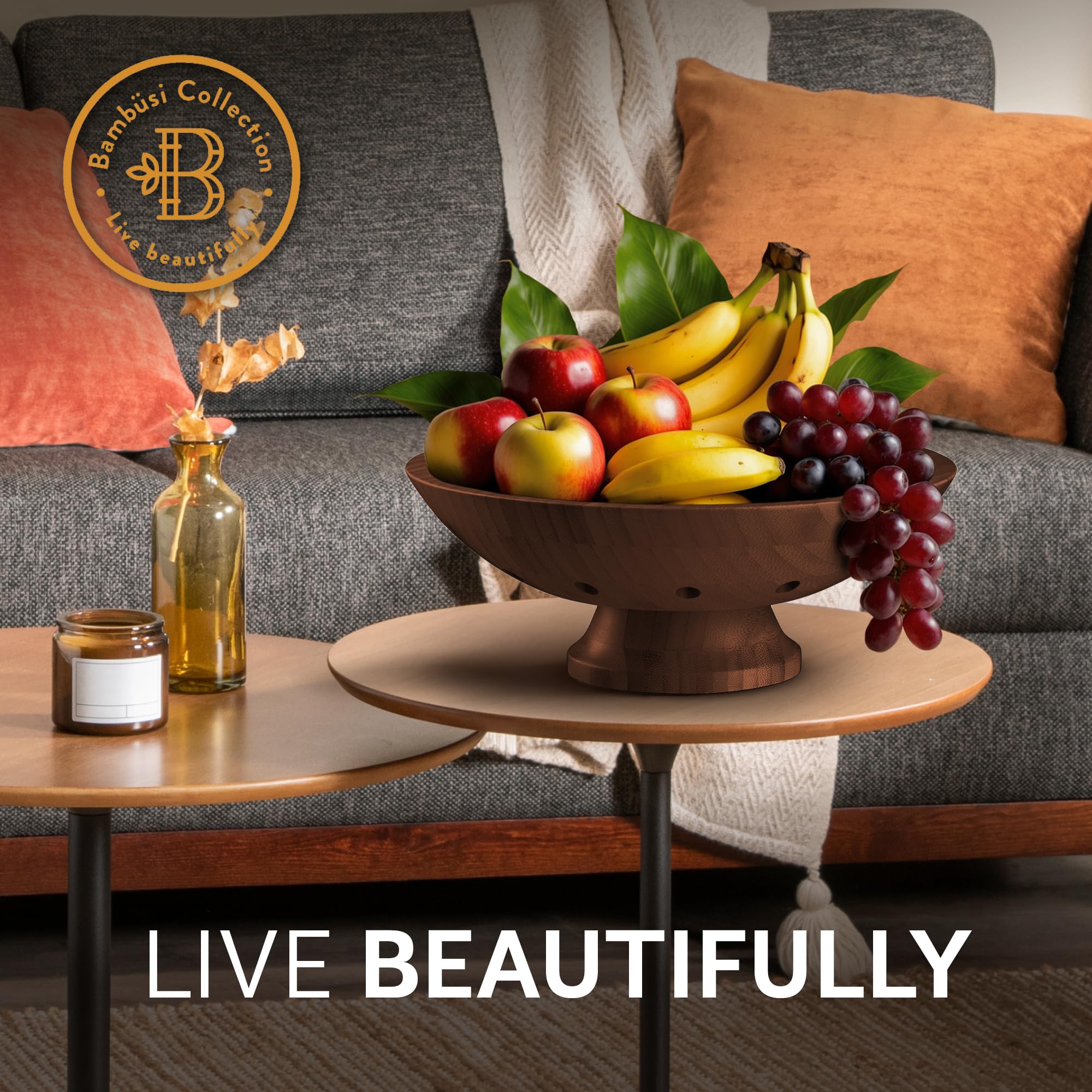 - RICH & ROOMY: A wide and deep brown wooden fruit bowl with generous space to organize apples, bananas, pears, and more neatly.