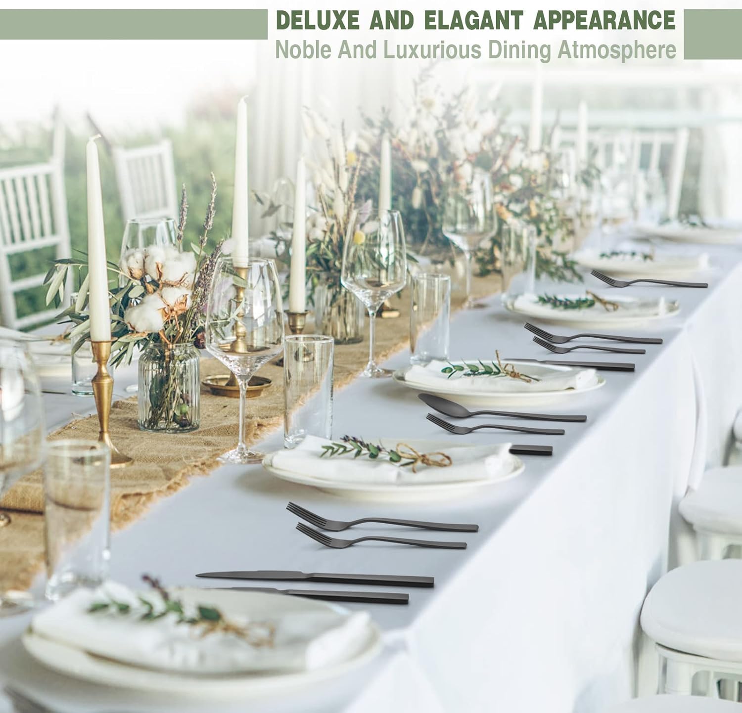 - ELEGANT BLACK LOOK: The mysterious black make each flatware with advanced feeling, just like a noble flatware used in the manor, The metal layer of the empty electroplating technology prevents the tableware from fading or cracking, smooth surface and fine workmanship make it more luxurious and create an elegant, noble and luxurious dining atmosphere. Whether you want to improve your dining atmosphere or make a difference in the tableware, you should not miss this set of tableware, it is also a wonderful wedding gift or Mother's Day gift