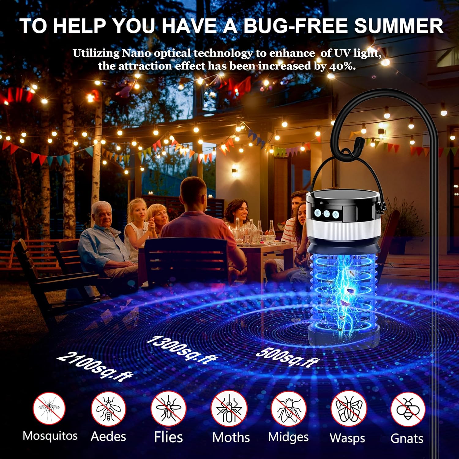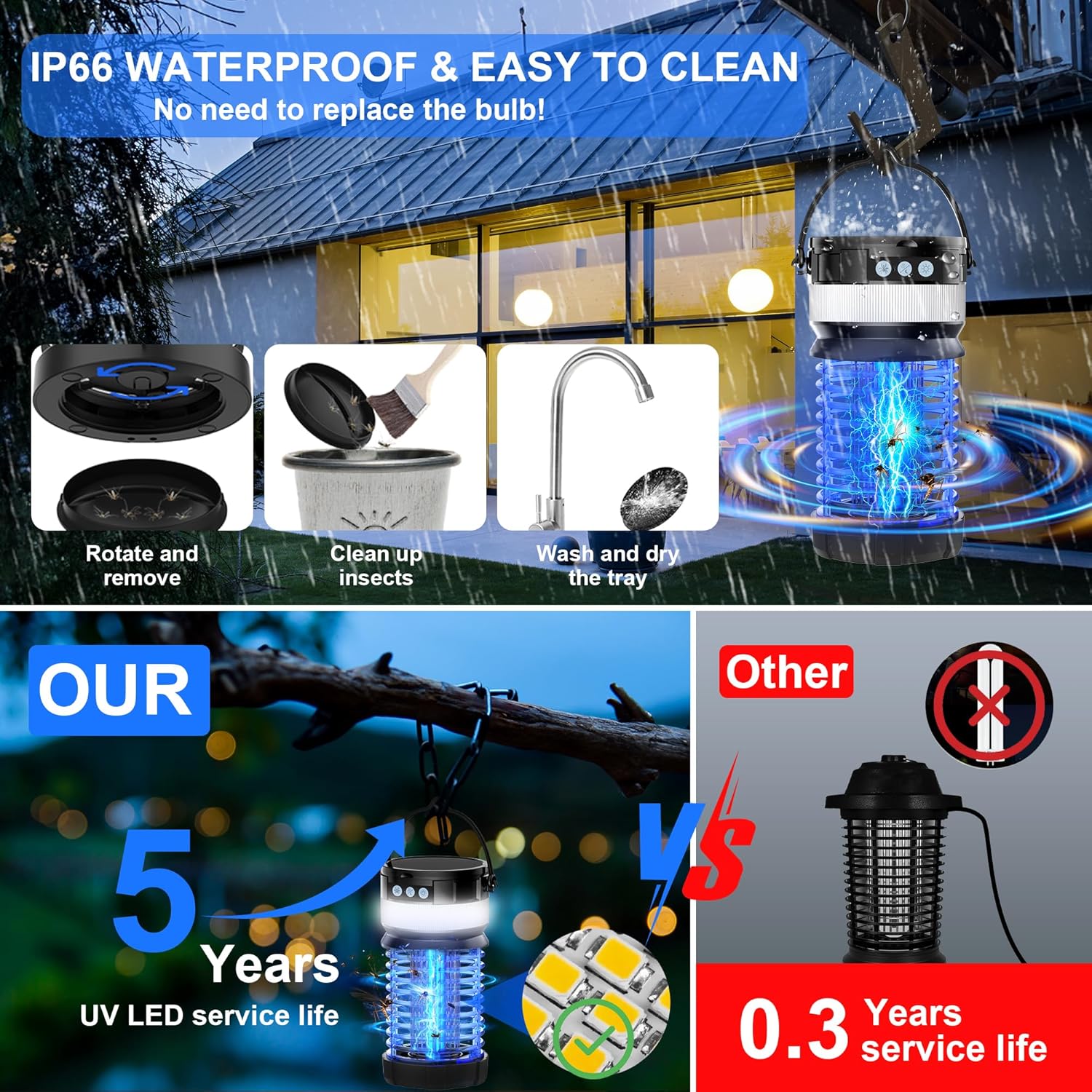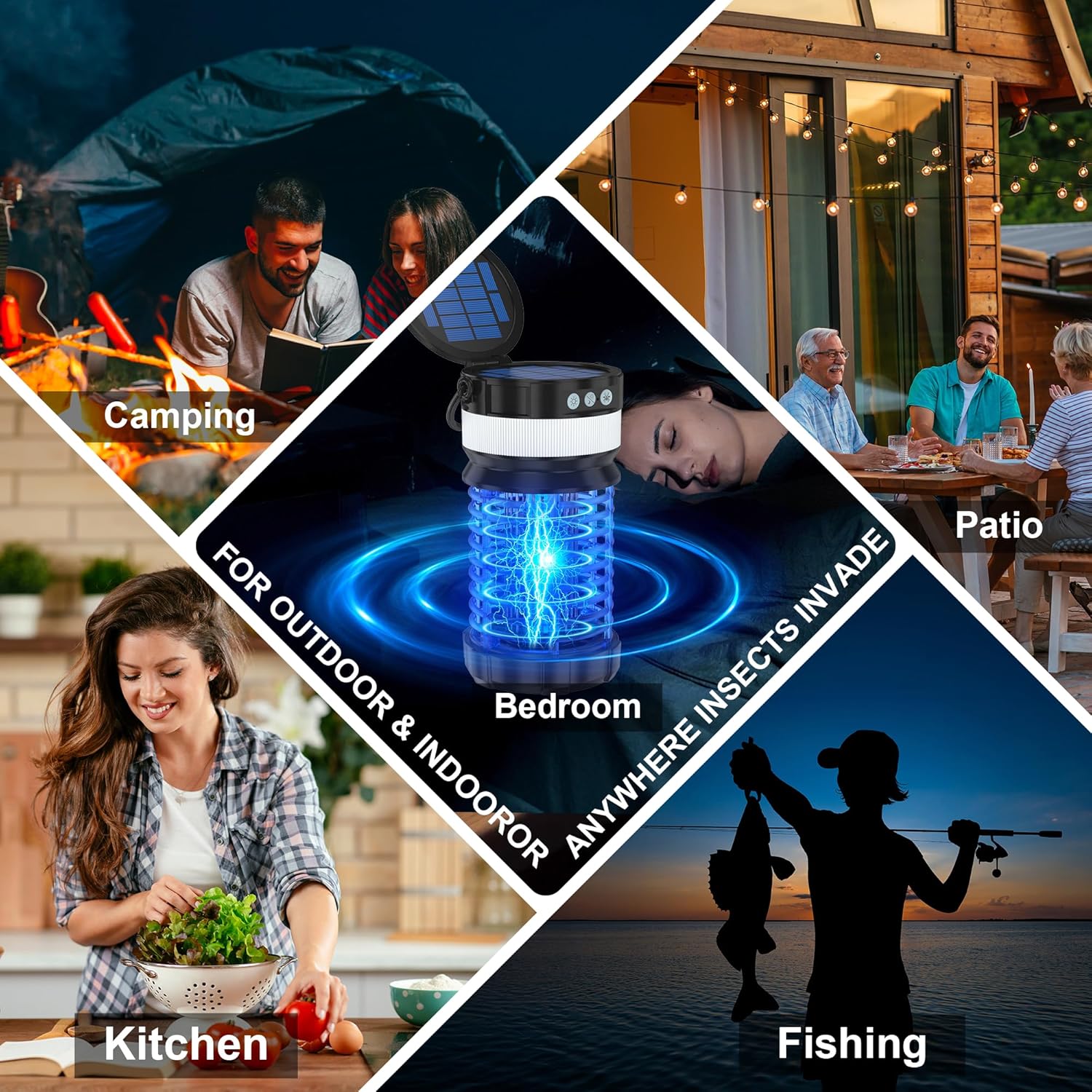- DUAL FOLDING SOLAR PANELS & 4000mAh BIG BATTERY:Solar bug zapper outdoor supports solar charging (two solar panels) & USB-C Charging, There is no need to rely on power outlet.Built-in 4000mAh high-capacity battery.After fully charged, the mosquito trap can last working for 10-16 hours in total,meet your needs for the whole day. Looking for the best bug zappers in the market? Look no further!