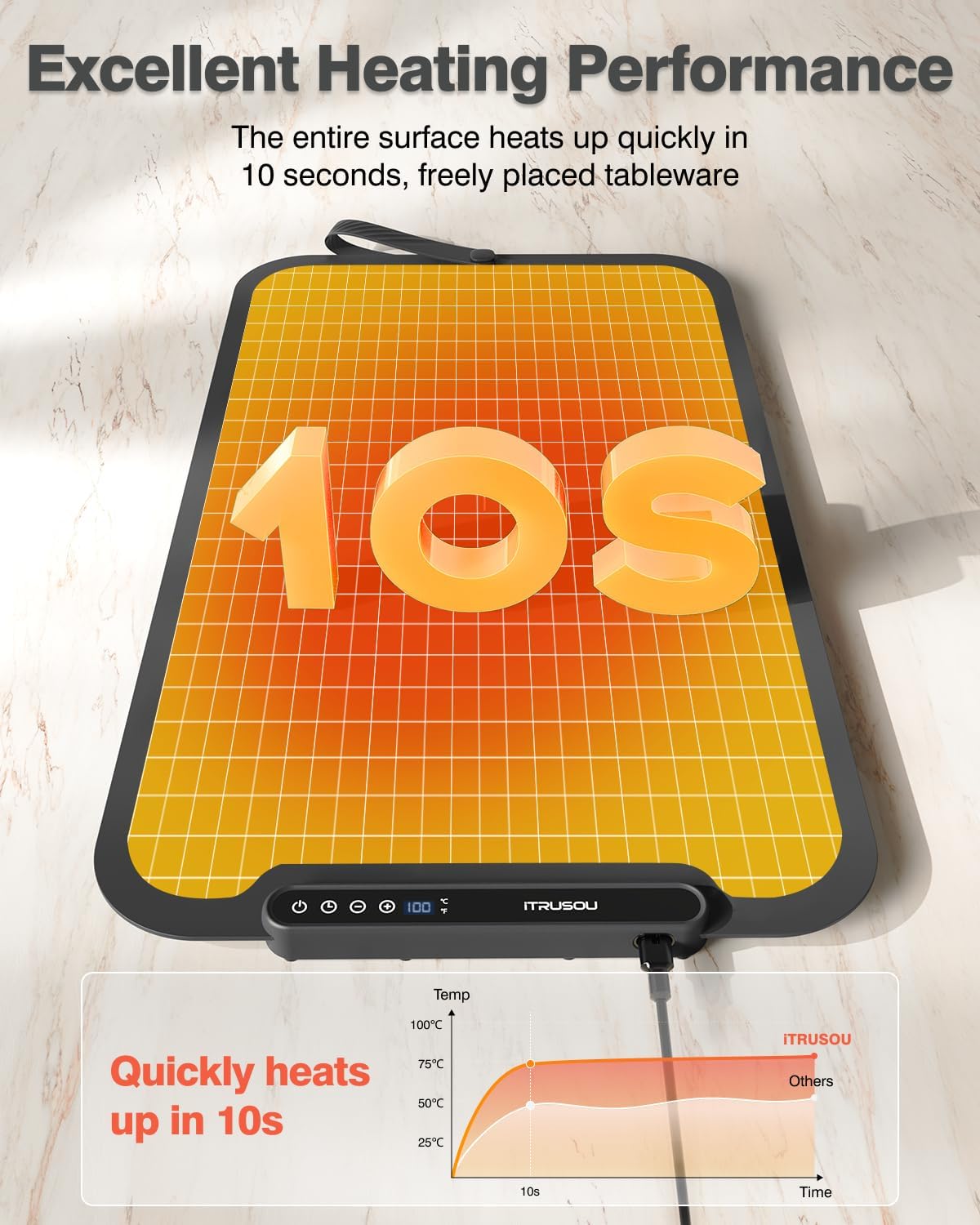 - 𝐐𝐮𝐢𝐜𝐤 & 𝐄𝐯𝐞𝐧 𝐇𝐞𝐚𝐭𝐢𝐧𝐠: Both trays feature rapid, full-surface heating in just 10 seconds, thanks to the advanced nano-coating silicone that ensures even, consistent warmth across the tray.