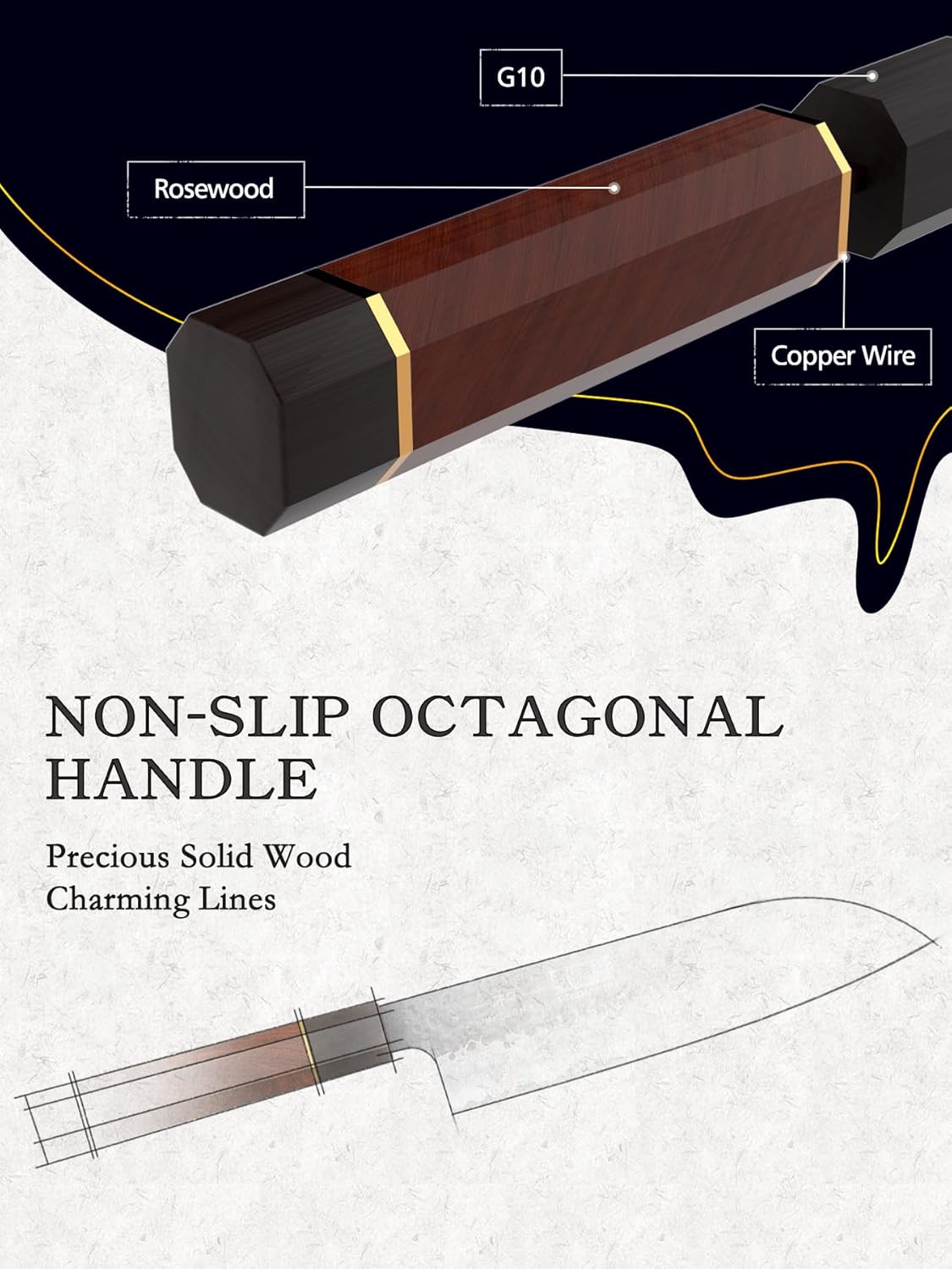 - 【Ergonomic & Comfortable Handle】Made of rosewood, beautiful natural texture, comfortable to hold, with excellent balance and flexibility; The octagonal handle design and widened shoulder finger positions provide excellent control and grip, perfect for long hours of cutting