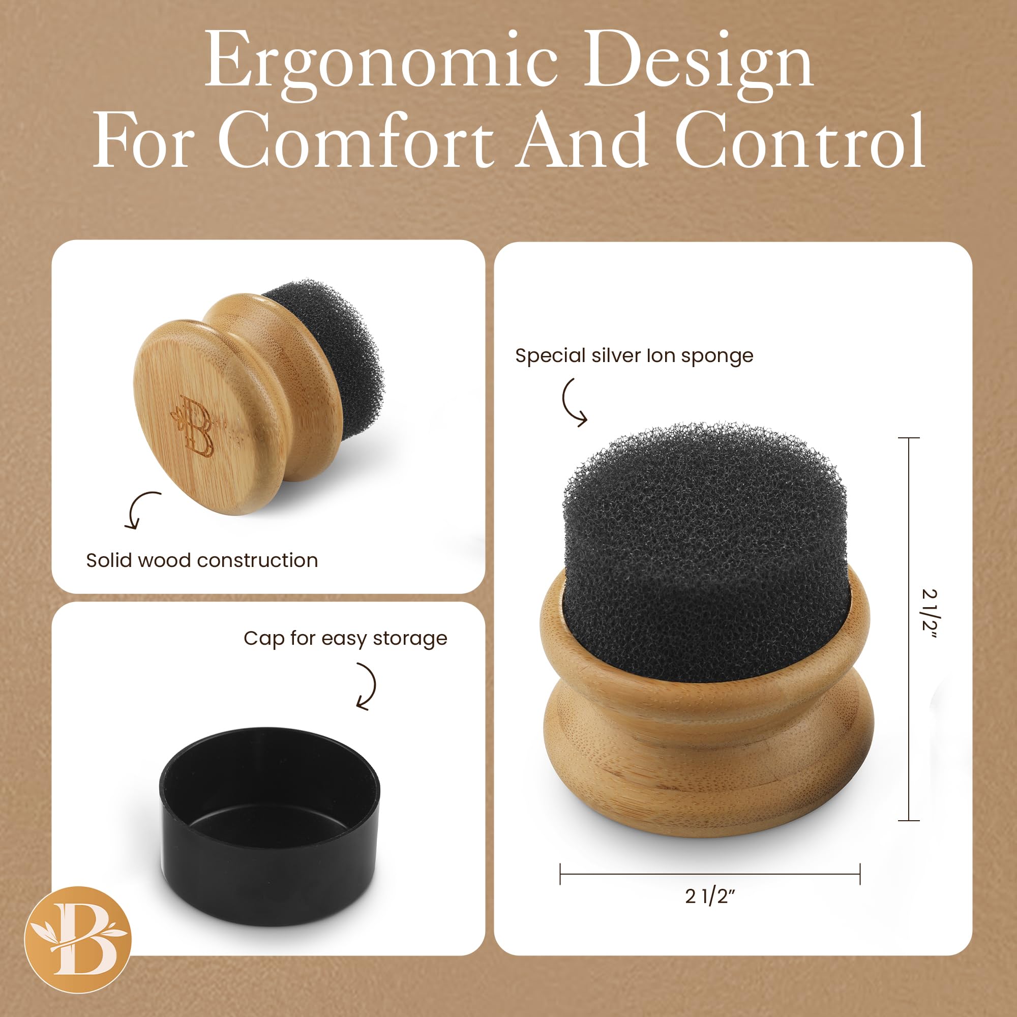 • Silver Ion Treated Sponge – This sponge features a unique silver-infused material designed to maintain cleanliness and ensure long-term freshness for your wooden surfaces, including cutting boards and butcher blocks