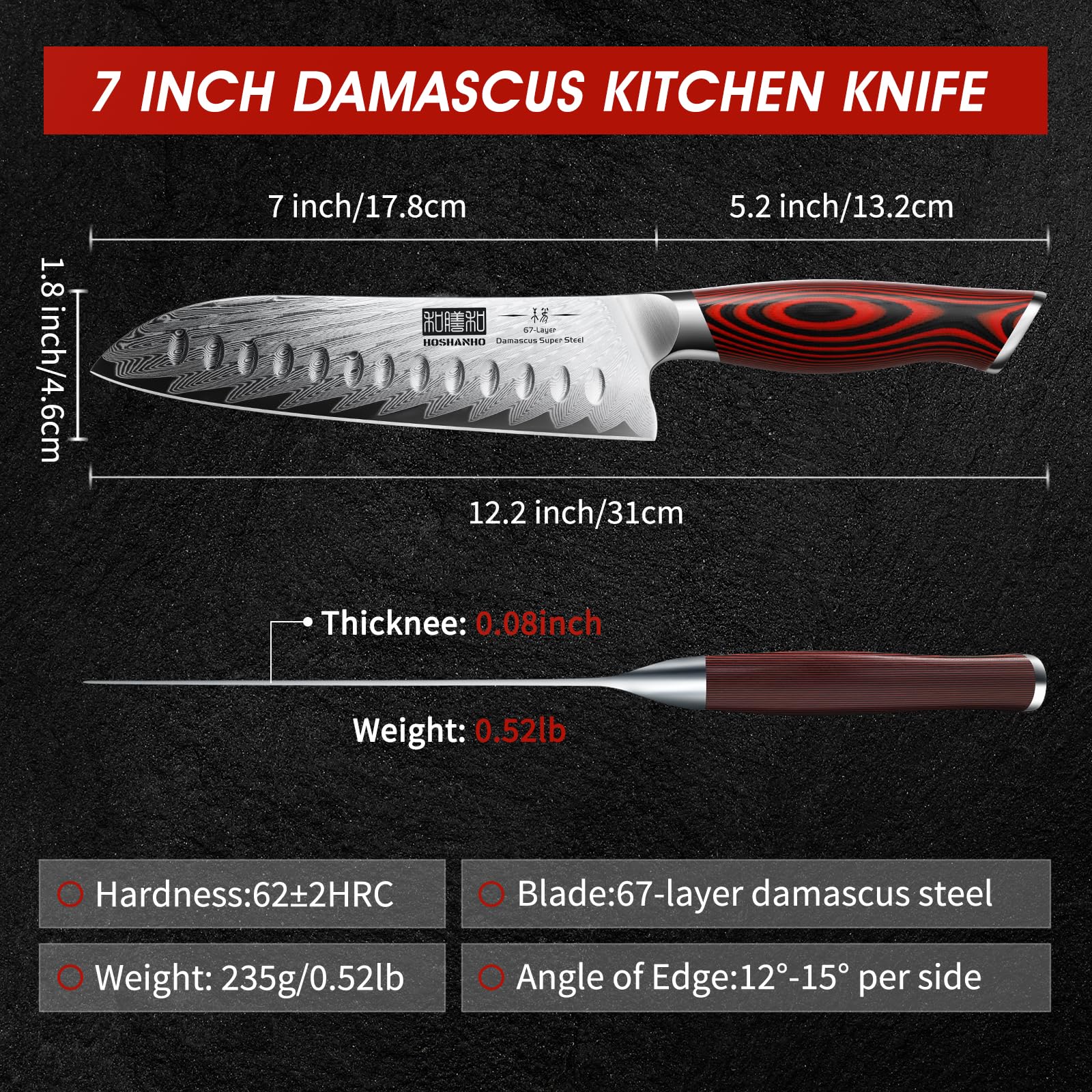 - Lightweight & Premium Kitchen Knife - 0.08 inch in thickness and 0.52lb in weight, it can be used smoothly with its lightweight. HOSHANHO Santoku chef knife is packed in a beautiful gift box, the perfect gift for yourself or others.