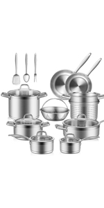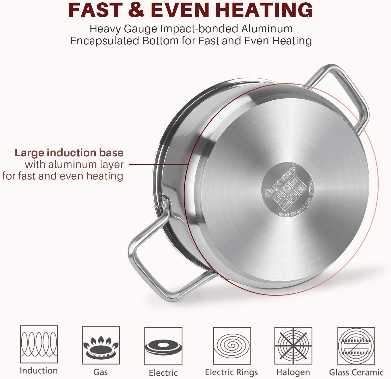 Impact bonded cookware is highly durable cookware, compatible with any form of cooktop use: gas, electric, infrared, ceramic and especially induction cooking! Created by a friction process to form the bond between the base of the vessel and the disc, no adhesive element is applied. The disc is placed on the base of the vessel, and when passed through the impact bonding machine, through pressure and friction, the bond is formed. The typical instantaneous pressure applied by a friction press ranges from 800 to 1500 tons! Impact bonding provides the cookware with a complete, secure attachment of the cooking disc to the base of the pot/pan.
