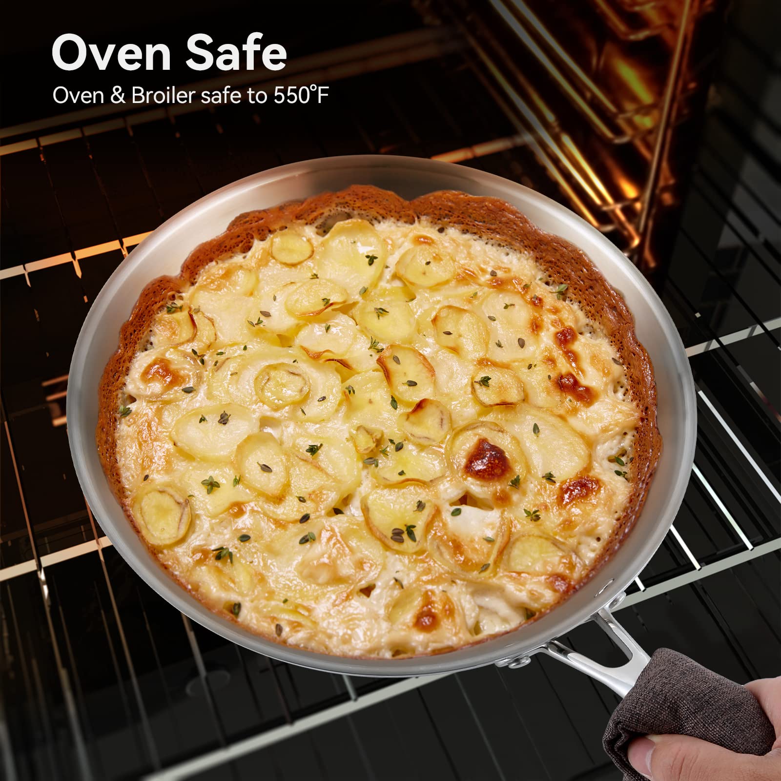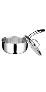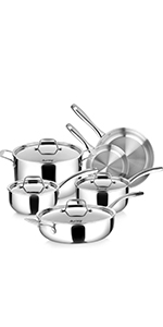 - EVEN HEATING: This kitchen cookware set is manufactured with whole-clad tri-ply stainless steel—ensuring even heating and eliminating hot spots. Suitable for all stovetops, such as induction, gas, electric and halogen cooktops