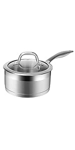 • HIGH QUALITY MATERIAL: This 3 quart saucepan is manufactured with whole-clad tri-ply stainless steel—ensuring even heating and eliminating hot spots