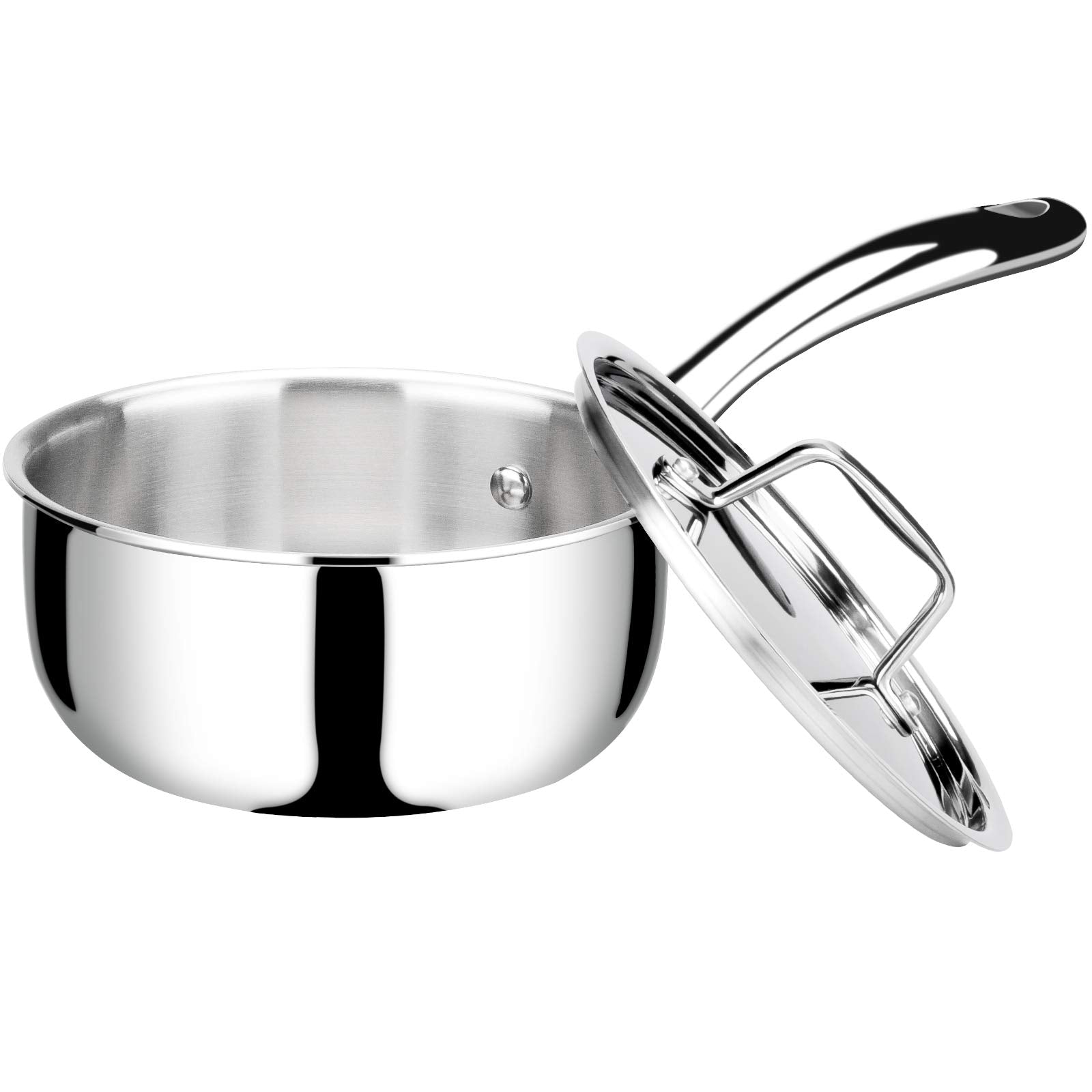 Duxtop Whole-Clad Tri-Ply Stainless Steel Saucepan with Lid, 3 Quart, Kitchen Induction Cookware