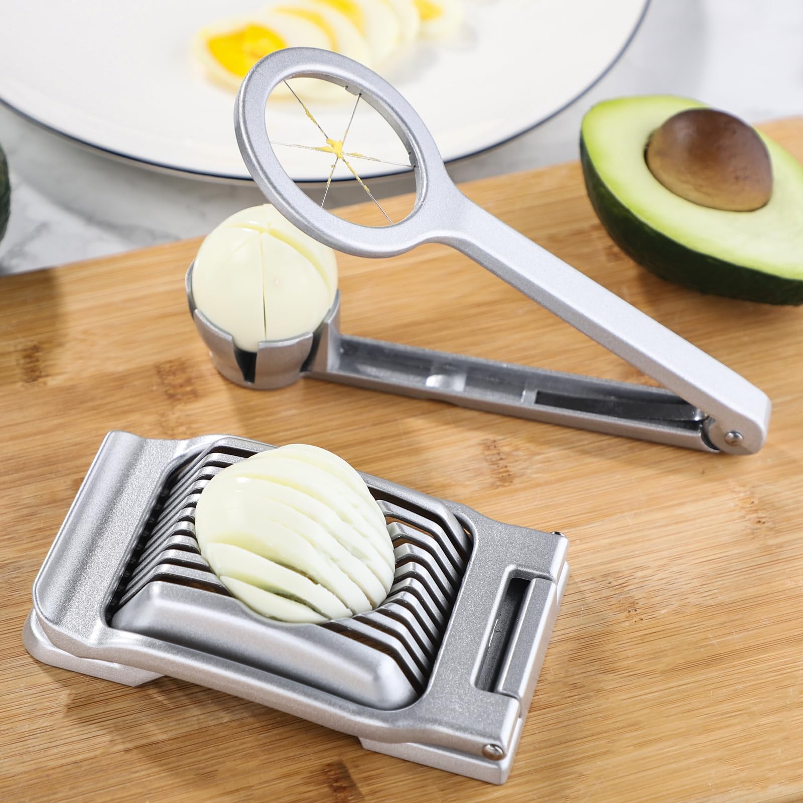 - 【Material】: Egg slicer for hard boiled eggs is made of 304 stainless steel which is heavy duty and last a long life without any corrosion, it won't rust, bend, break or weaken.