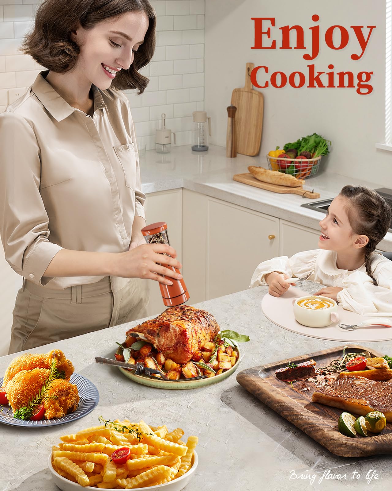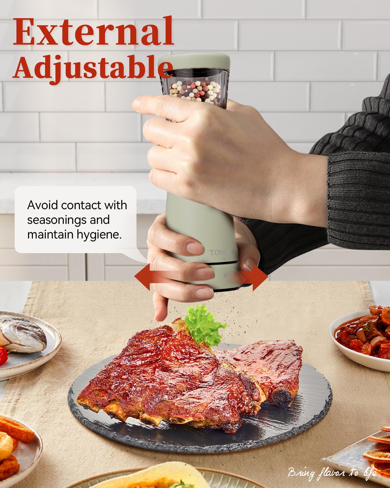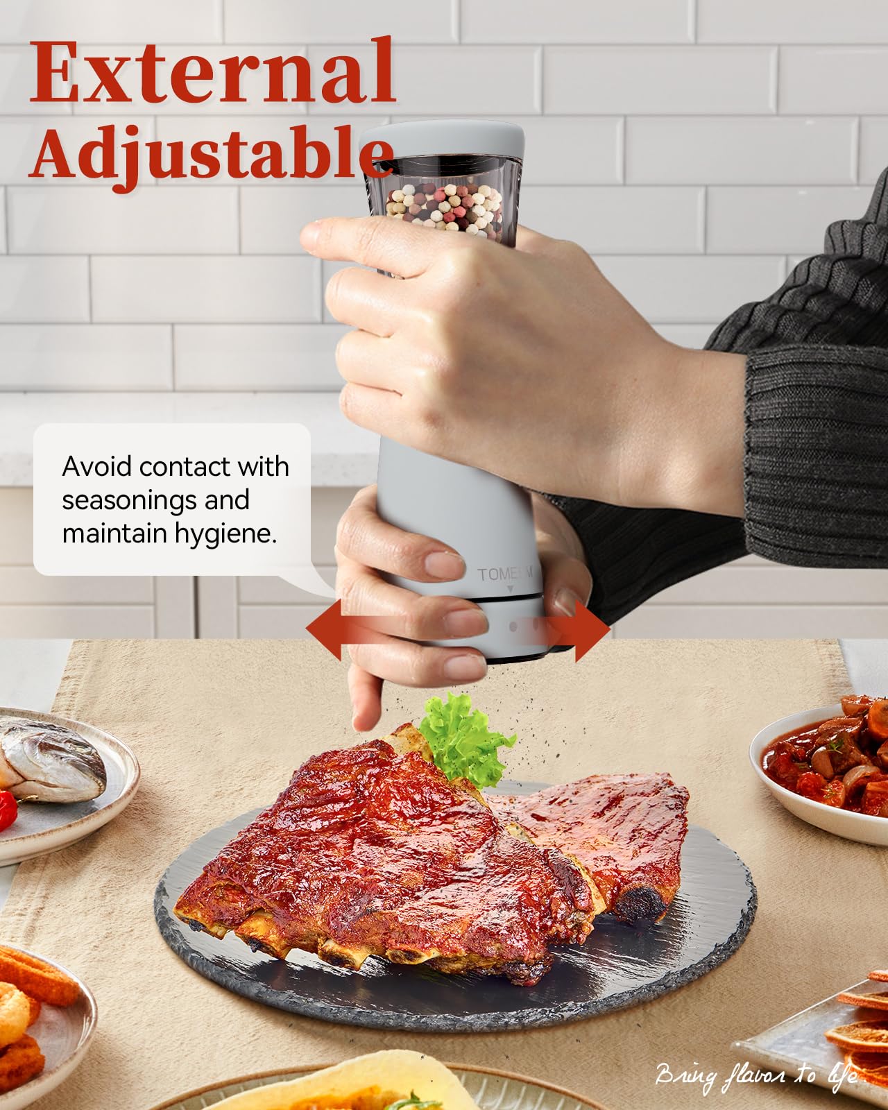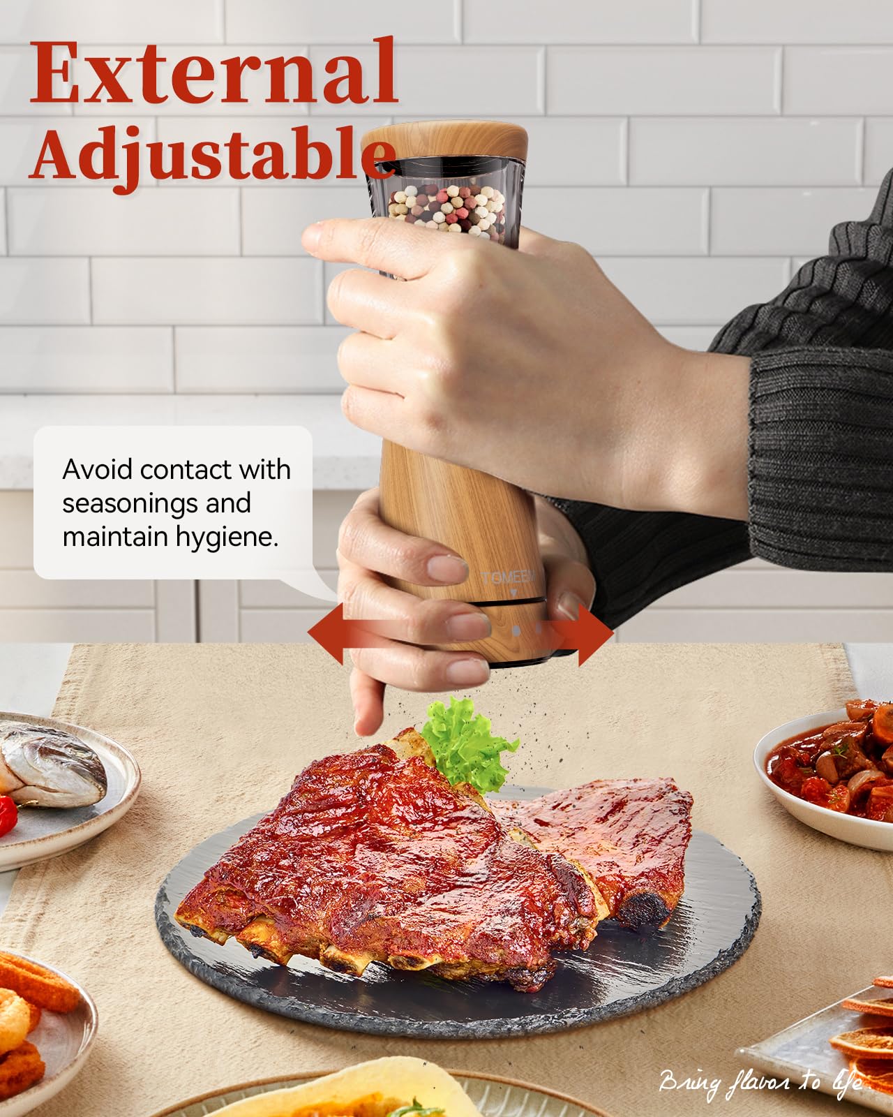 - Precision Grinding with Ease: Achieve the precise grind every time with the user-friendly adjustable coarseness feature. Simply twist the knob at the base to tailor your spices from fine to coarse