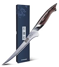 • 【Ergonomic Design】The ergonomic shape of the fish knife's handle provides a more comfortable grip and reduces user fatigue. The handle of the boning knife is made of durable pakkawood, these materials have good resistance to corrosion and abrasion, which ensures a long service life of the fillet knife.