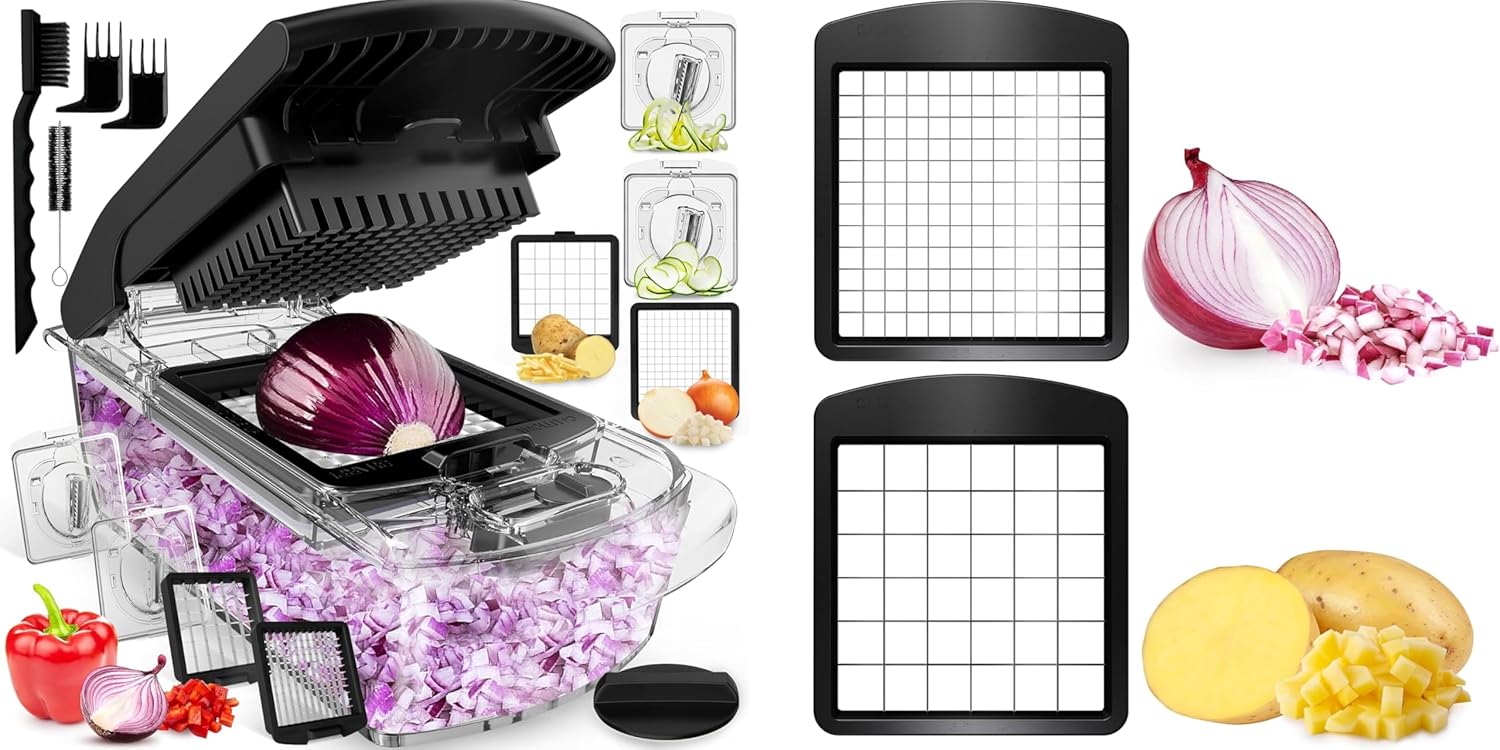 • Easy Meal Prep with Rust-Resistant Blades - Our vegetable chopper is perfect for anyone who wants to eat healthier but doesn't have a lot of time to spare. Dice potatoes, tomatoes, cucumbers, carrots, and more with the heavy-duty, rust-resistant blades. The 420 stainless steel blades retain razor sharpness for crisp, smooth dicing.