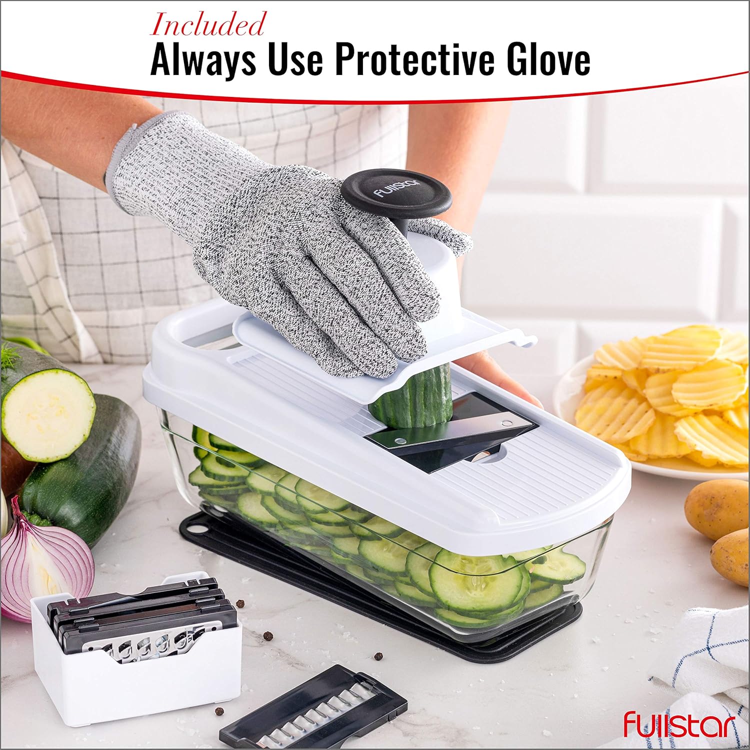 - Compact and Practical - Our vegetable mandoline slicer can be fully disassembled with ease and the included blade box means that worrying about storage and organization is a thing of the past. Plus this kitchen gadget is dishwasher safe and comes with a specialized cleaning tool, making cleaning a breeze!