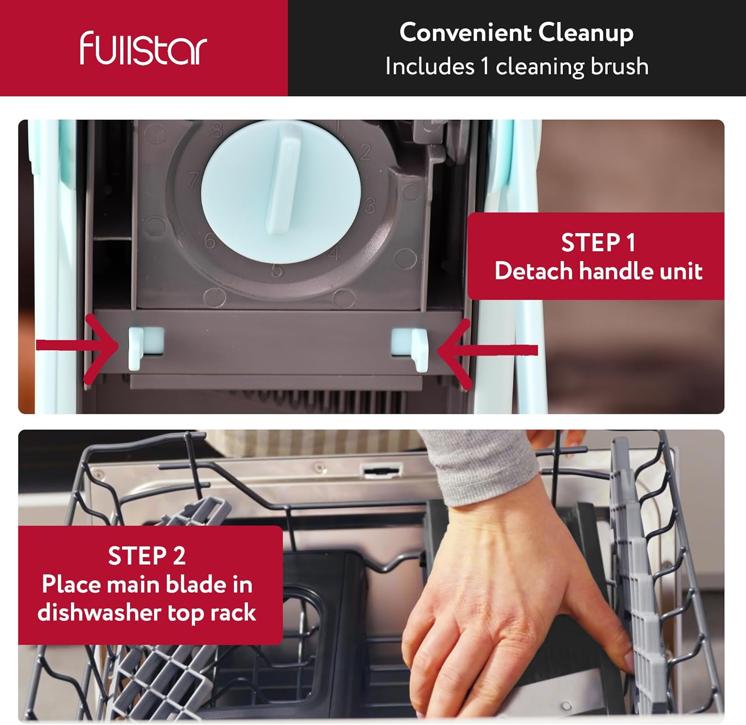 - Innovative Easy Clean Design - Enjoy a hassle-free cleanup with this safer mandoline slicer for kitchen. Simply detach the food slicer's handle unit and place the main blade unit in the dishwasher's top rack.