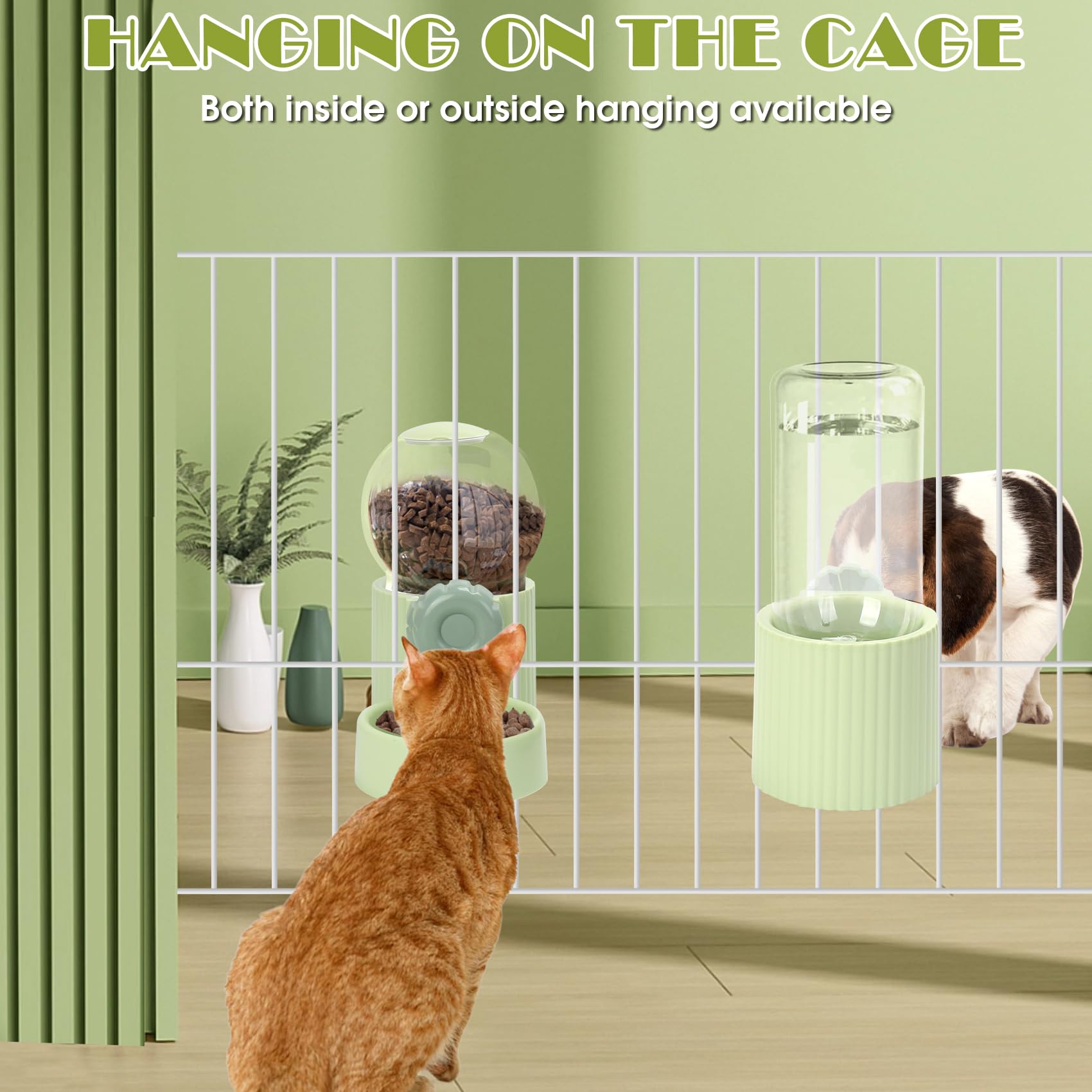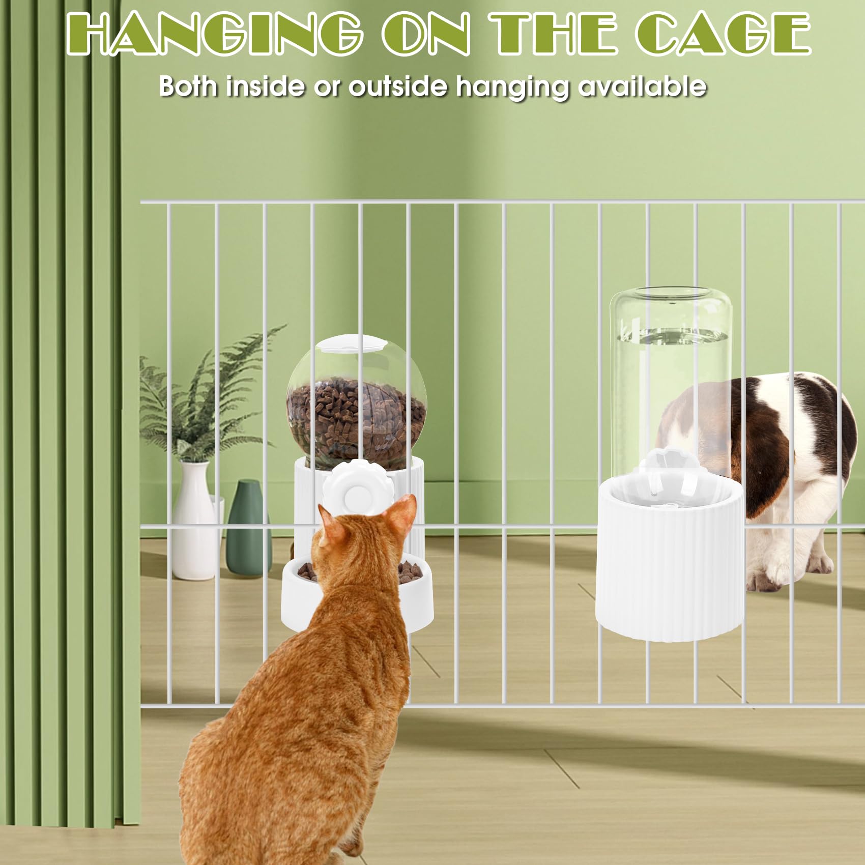 - Hanging automatic rabbit food and water dispenser set have enough capacity for small animals, like kitten, puppy, bunny, guinea pig, allow them to enjoy fresh food and water conveniently for about 3-6 days.