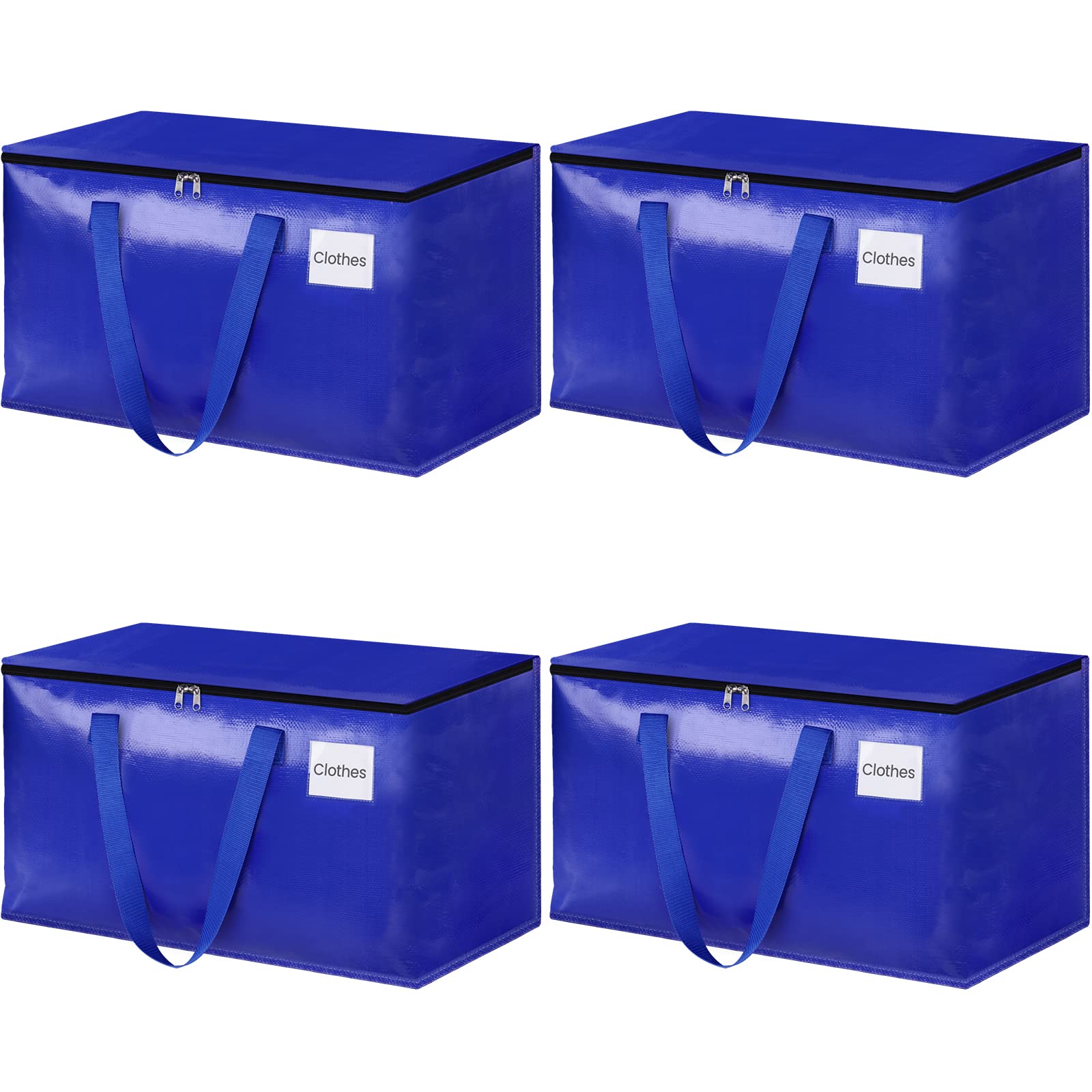 HomeHacks Moving Bags, 8-Pack Heavy Duty with Strong Zippers and Handles Collapsible Moving Supplies, Storage Totes for Packing & Moving Storing 93L-8 Pack (Blue)
