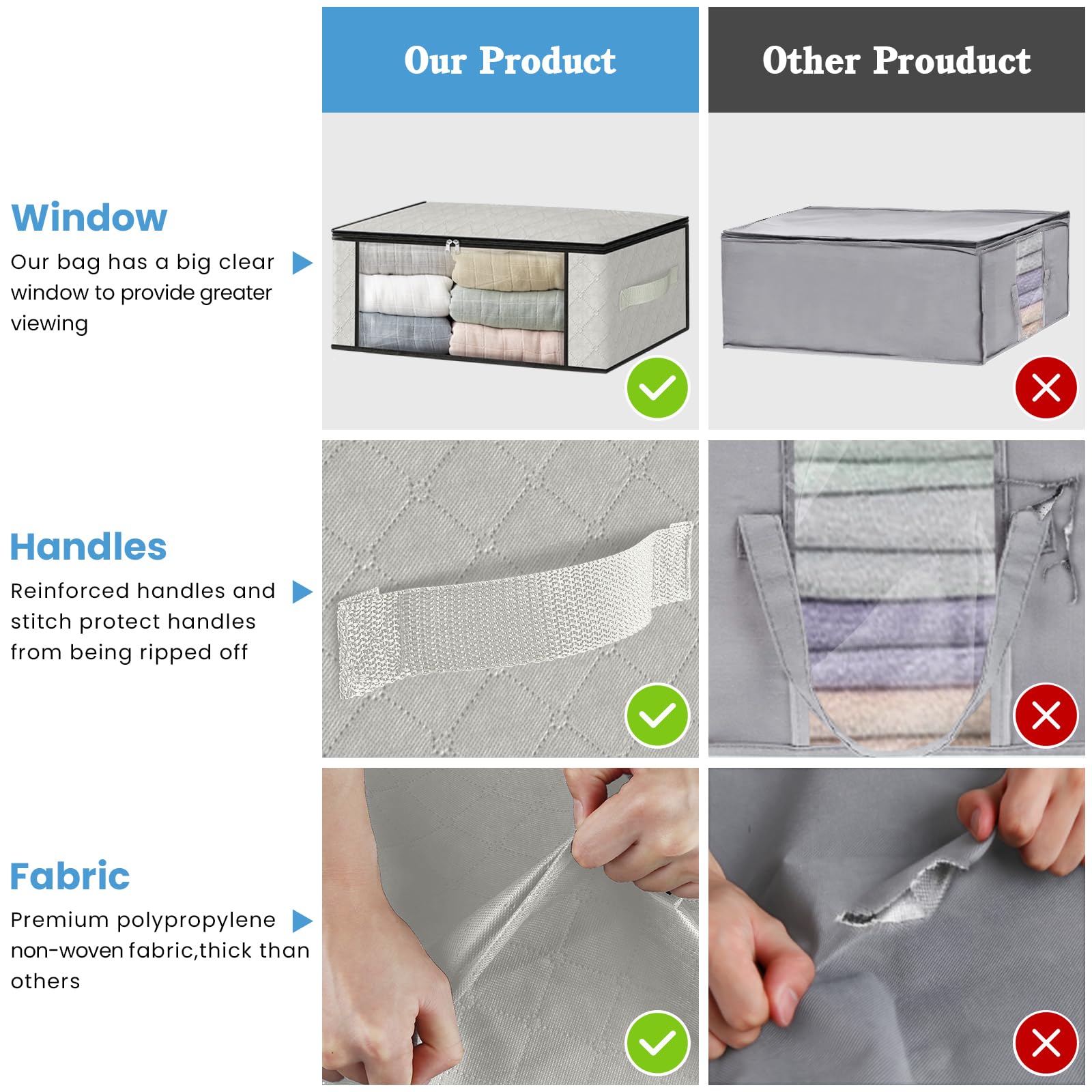 - 【Reinforced Handles】The reinforced handles are sewn with 3 layers of fabric to ensure easier carrying. You can lift the storage box without worrying about it breaking when filled with heavy clothes