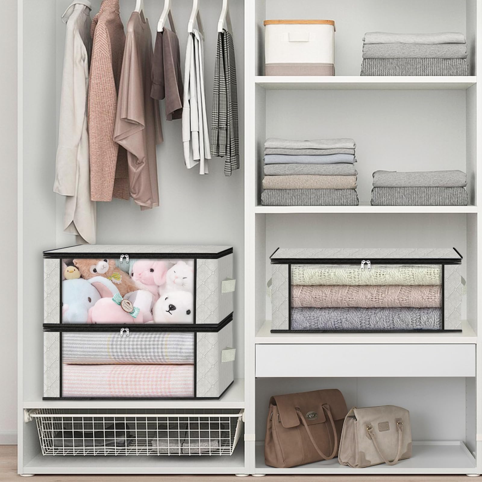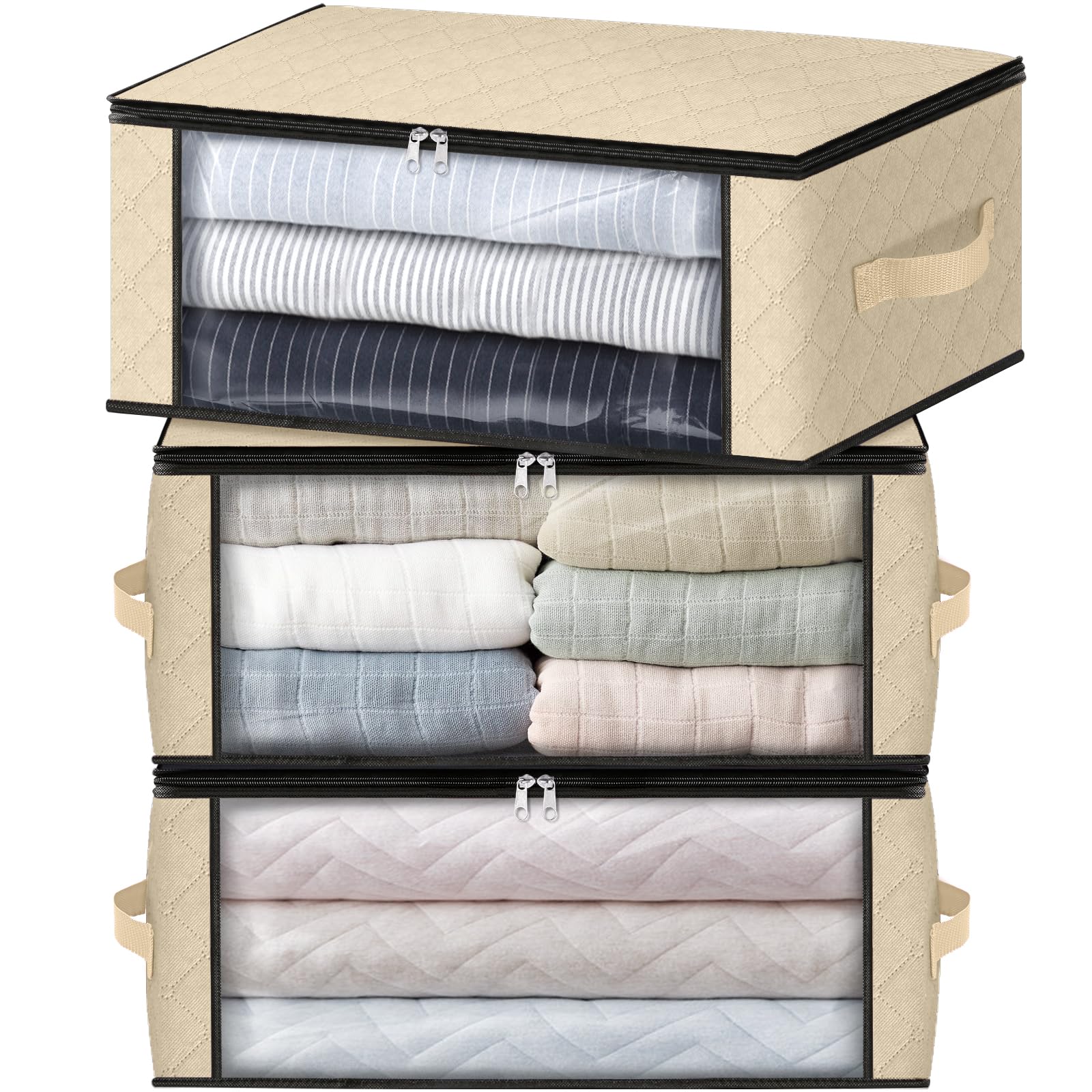 - 【Multifunctional】Make organization easy. Placed in a closet, under bed, in nursery, dormitory, bedroom, etc. Store clothes, blankets, shoes, quilts, sheets, bedding, stuffed animals, pillow, sweaters, books, T-shirt, etc