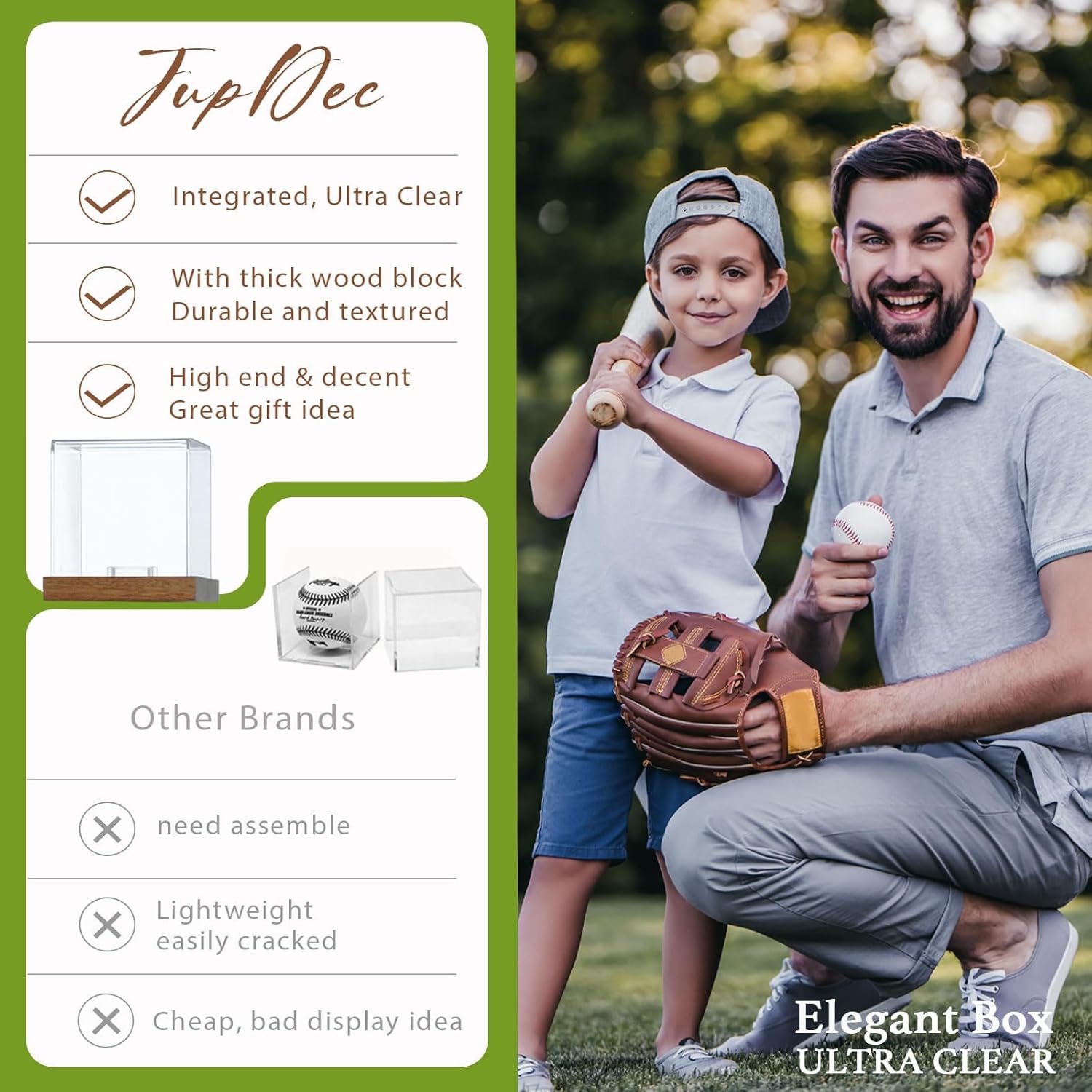 JupDec Baseball Display Case with Wood Stand, Clear Acrylic Game Ball Holder Showcase, UV Protection Souvenirs and Collectibles Box, Ideal Gift for Autograph Single MLB Ball
