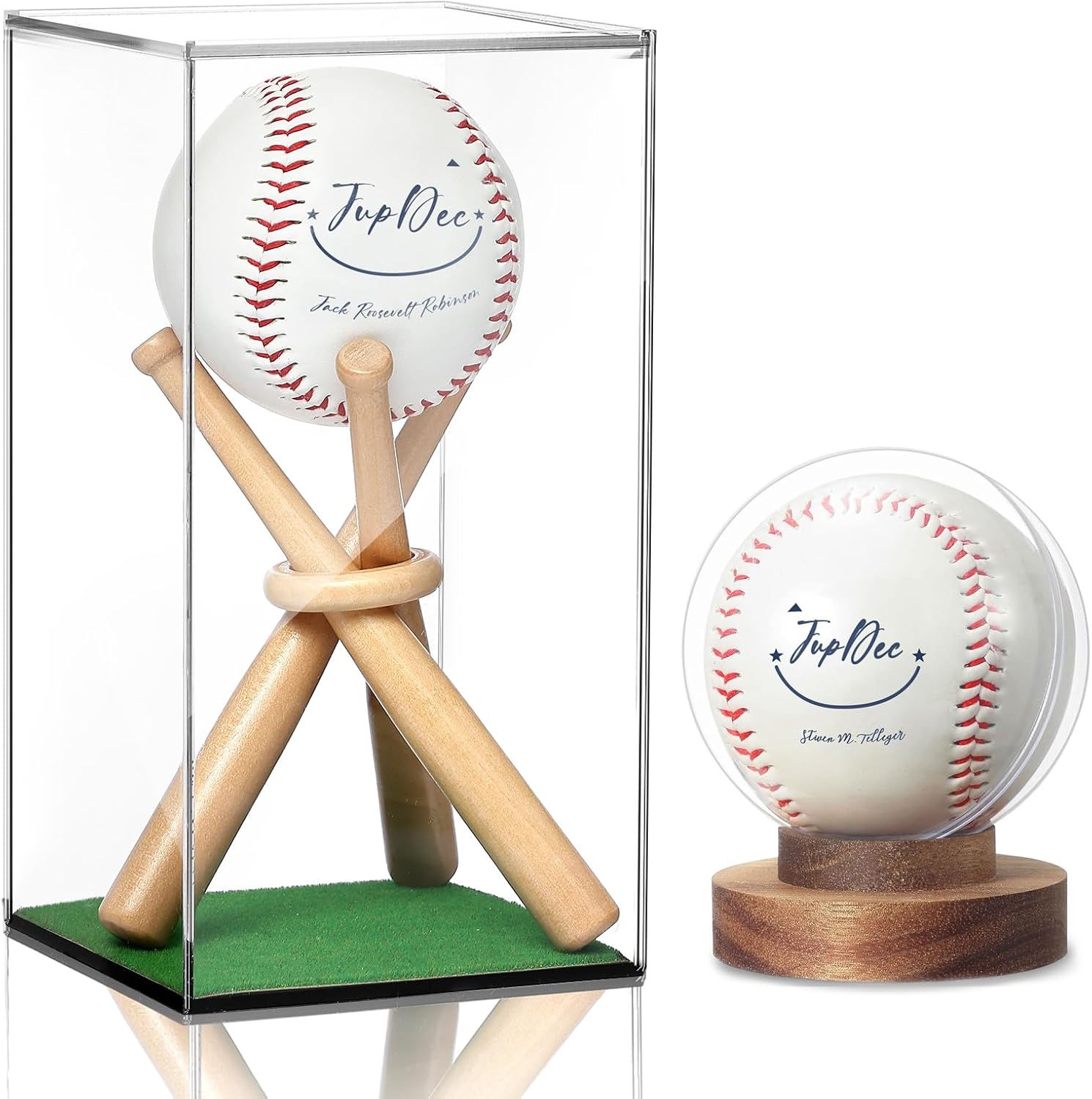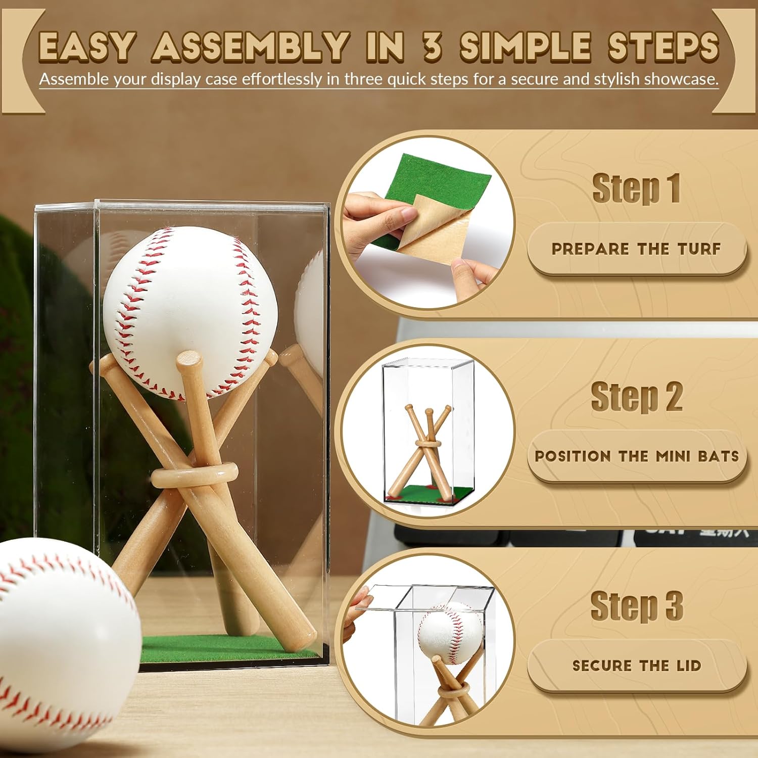 - Creative and Stable Support for Your Baseball - More than just a box, our baseball display case is a work of art! With three mini wooden bats and a wooden ring, the design creates a stable triangle to securely display your baseball. The easy assembly lets you remove the sliding acrylic cover, position the bats, and place your baseball. Enjoy a wobble-free display that lets your baseball shine. The perfect combination of design, stability, and simplicity.