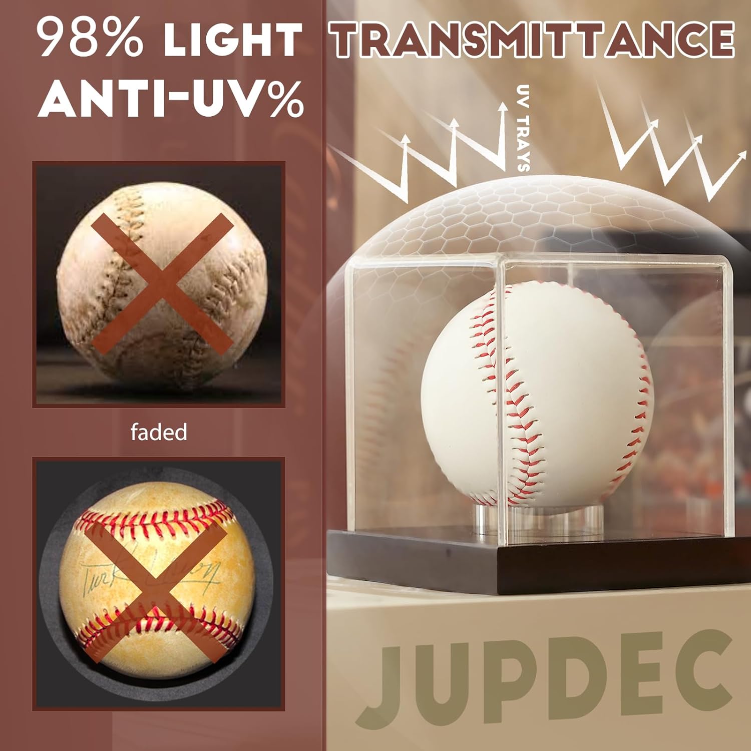 - The baseball display case is equipped with a walnut wood base underneath, making the baseball case look more upscale and setting off the baseball's extraordinary, and the base can also ensure that the baseball case will not tumble.