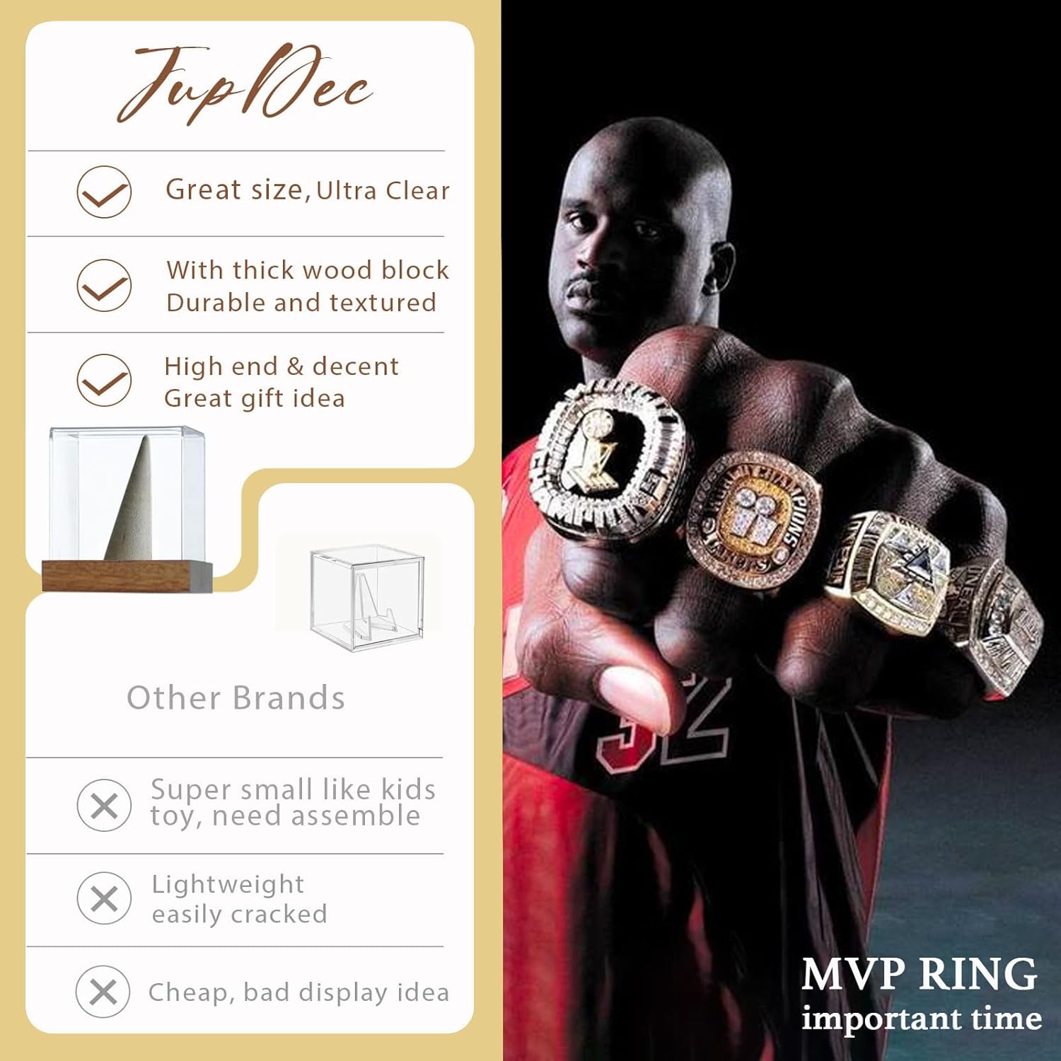 JupDec Jersey Frame & Championship Ring Display Case, Large Clear Acrylic Shadow Box with UV Protection Wooden Showcase, , Idea Gift for Sports Fans