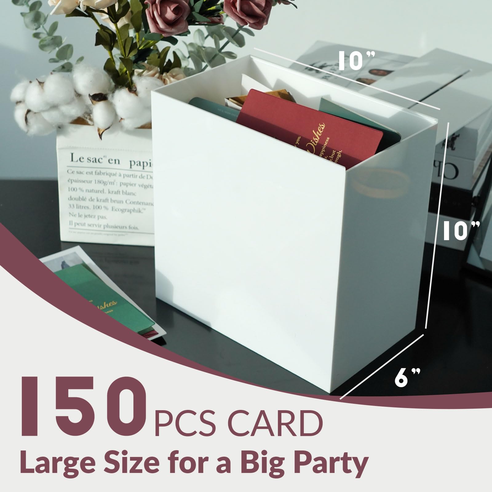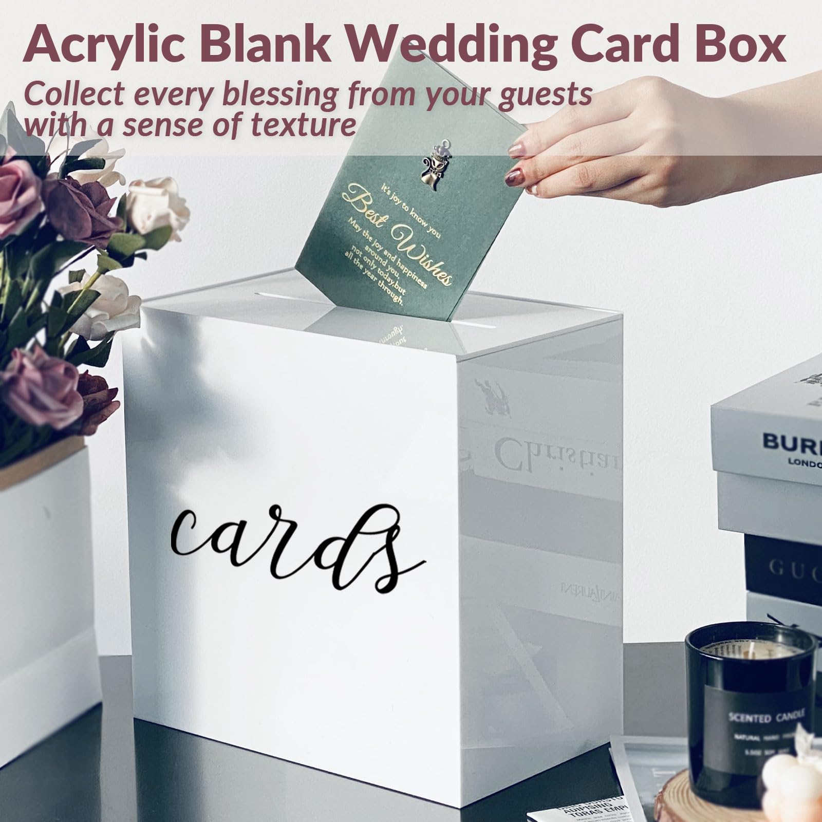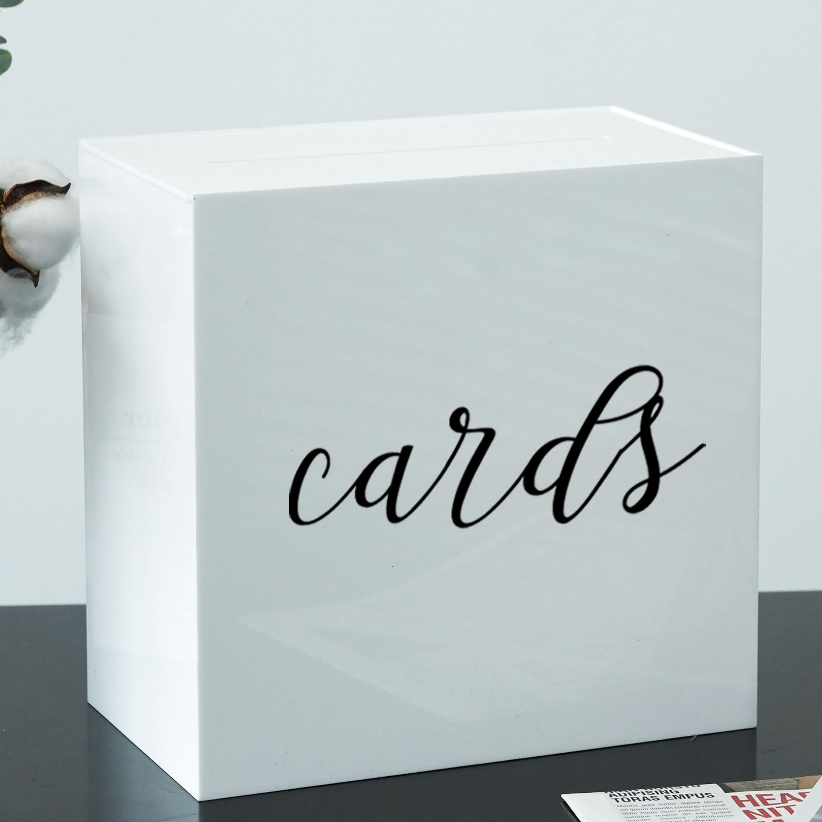 JupDec White Wedding Card Box Reception with Slot, 10" Large Acrylic Card Storage Box for Gifts, Souvenirs, Donations, Baby Showers, Birthday Party, Graduations