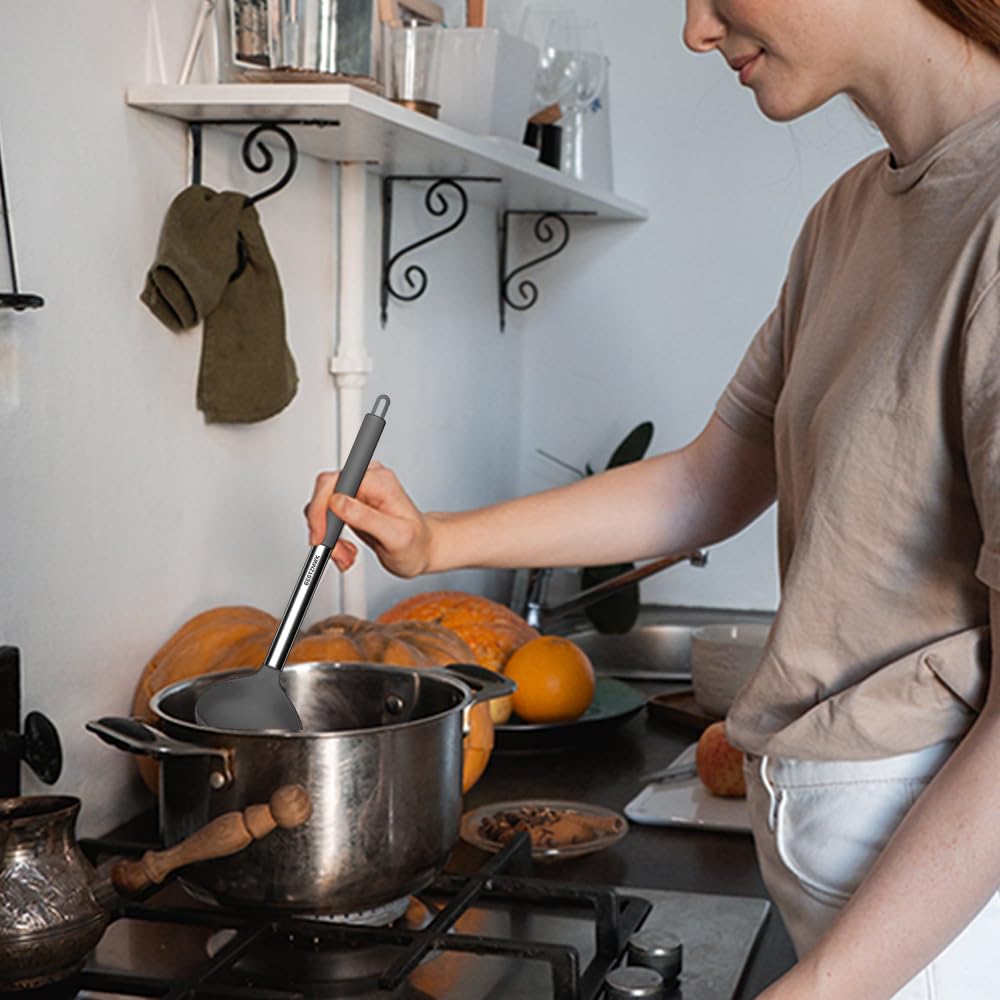 - LASTS A LIFETIME: The most durable utensils set in the market features thick handles designed using top-grade 304 stainless steel, and utensil heads made out of durable silicone. Even with daily use, they’re designed to not bend like plastic utensils, not break like wooden kitchen tools, and not rust like other metallic utensils.