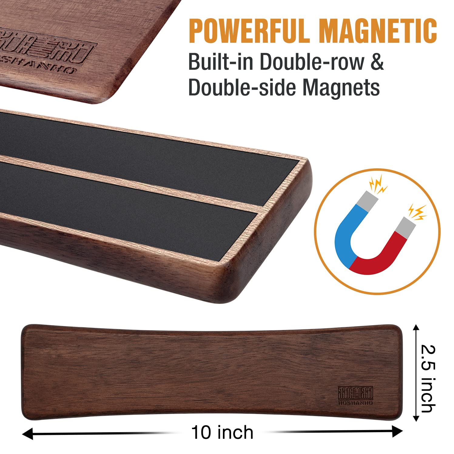 - 【Acacia Wood & Super Strong Magnet】HOSHANHO magnetic knife strip is made from top-quality acacia wood and built-in two rows of powerful magnets running through the entire strip, stronger adsorption force allow even your largest knives to hang safely and securely, ultra sturdy and easy to clean up.