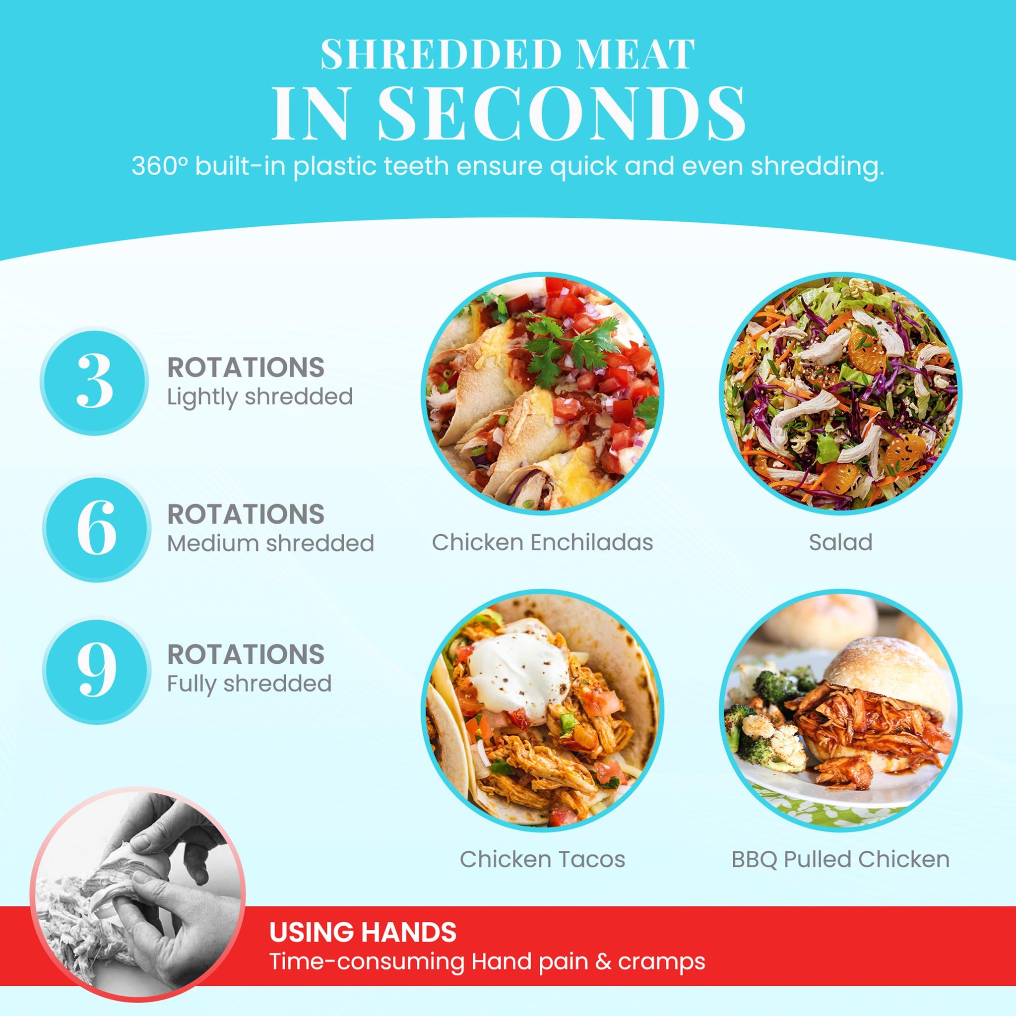 - ☑️💪【Reinforced Non-Slip Base】 Engineered for durability, our heavy-duty rubber base is securely machine-pressed to stay firmly in place, even after frequent hand or dishwasher cleaning. It offers reliable stability during heavy use, ensuring a hassle-free shredding experience.