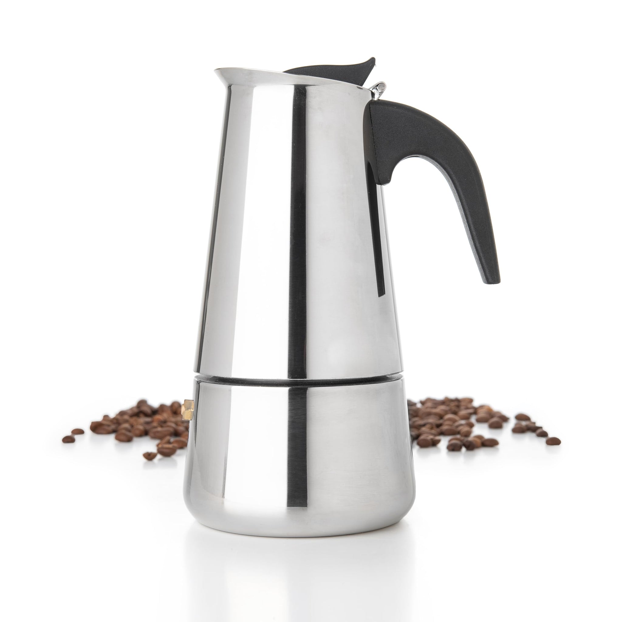 • Stainless Steel Moka Pot: This espresso maker stove top is crafted from durable, heavy-duty stainless steel with a non-reactive interior for pure coffee taste. It’s compatible with all standard heat sources, including gas, ceramic, and electric stoves — ideal for home kitchens or outdoor use.